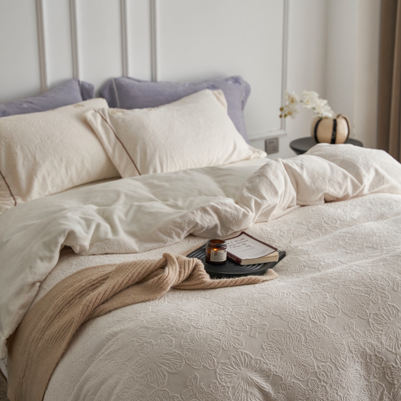 商品名称:(总)云胡 2023新款230克雕花牛奶绒绣花贴线宽边工艺款四件套