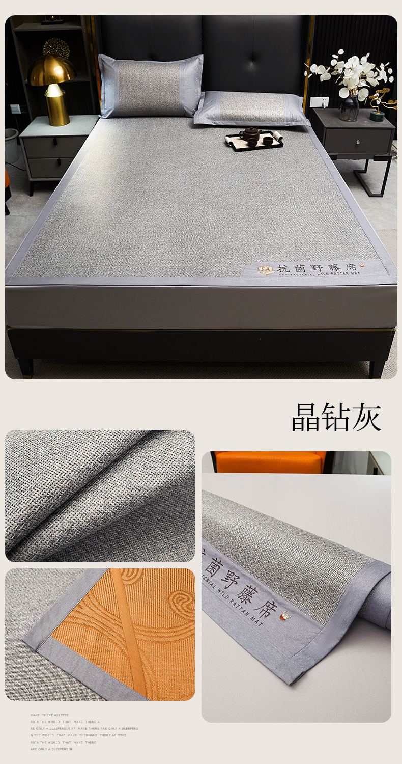 商品名称:鑫姿席业 2025新款5A抗菌野藤席系列床单款 晶钻灰