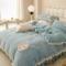 胜权 新款AB版仿兔绒牛奶绒加厚韩国绒刺绣夹棉床盖四件套 莫奈蓝