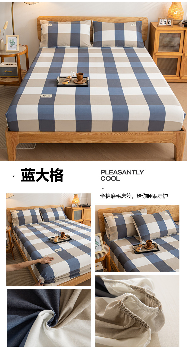 (总)恋人优选 2025新款A类全棉磨毛加厚床笠,宾利蓝,卡其,果绿,海蓝格,蓝大格,魅力黄,浅灰,浅蓝,浅蓝小格,少女粉