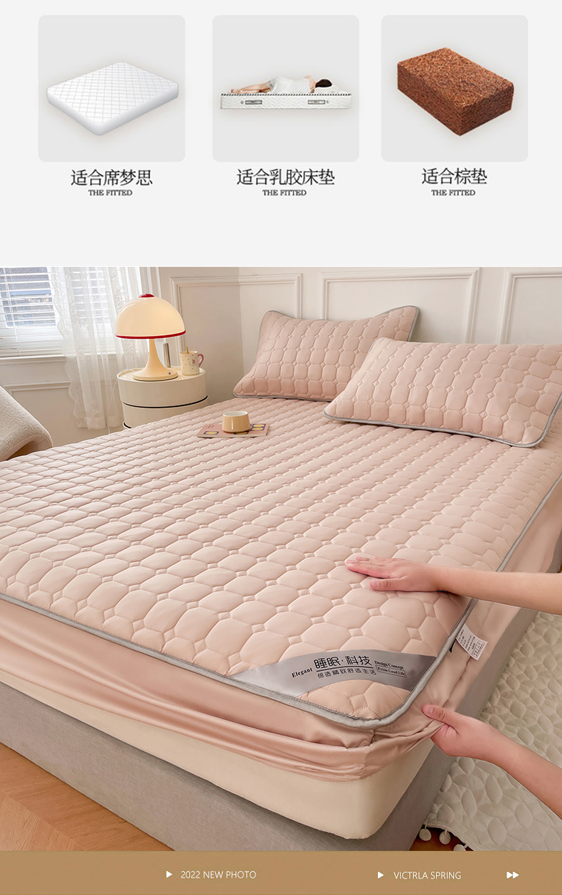 (总)蕾诺家纺 2025新款加厚泡泡兔绒夹棉床垫保护垫,丁香紫,孔雀蓝,抹茶绿,石墨灰,温暖咖,珍珠白