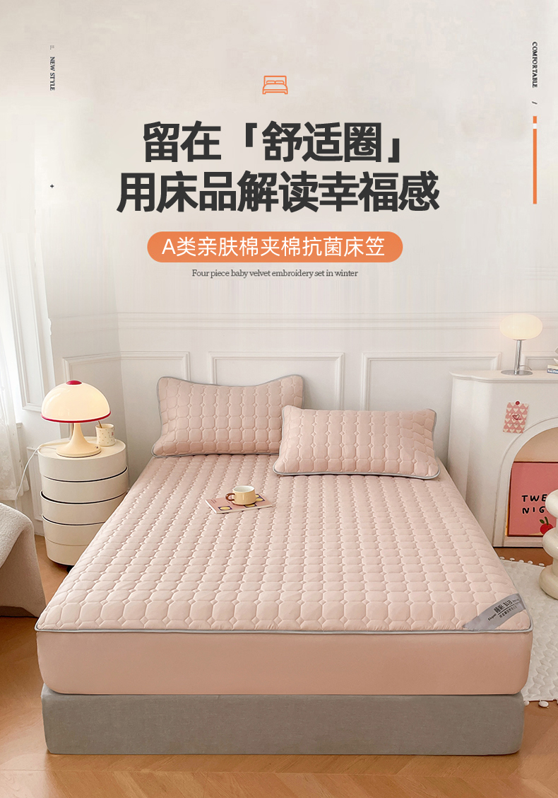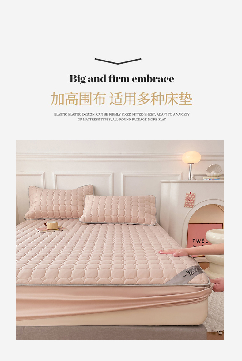 2023新款 印花A类水洗亲肤棉绗绣加厚夹棉防水床笠 优雅白,优雅白