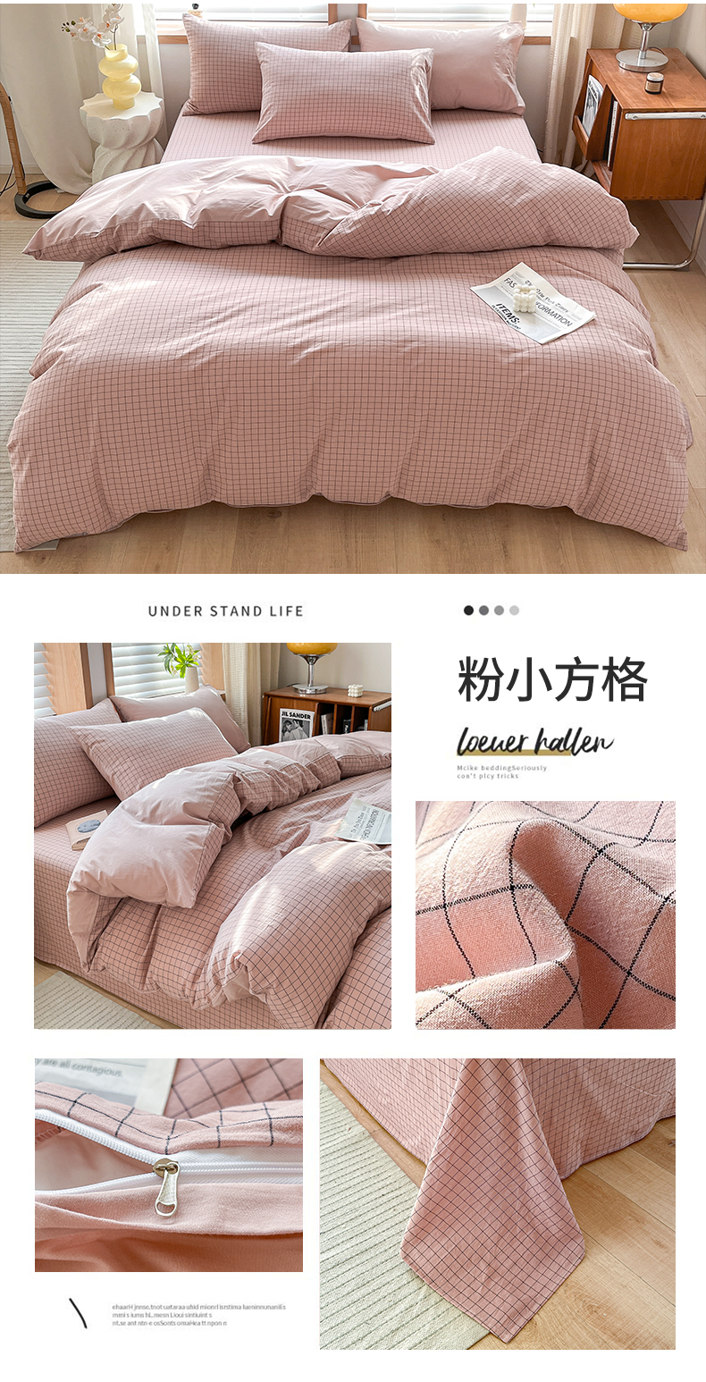 商品名称:启程家纺 2026新款全棉A类水洗棉多规格四件套单品-四件套 粉小方格