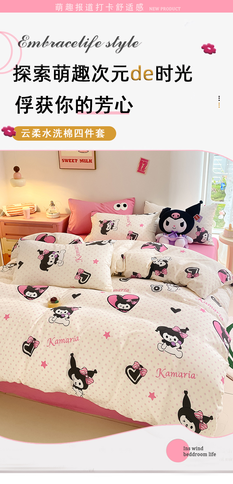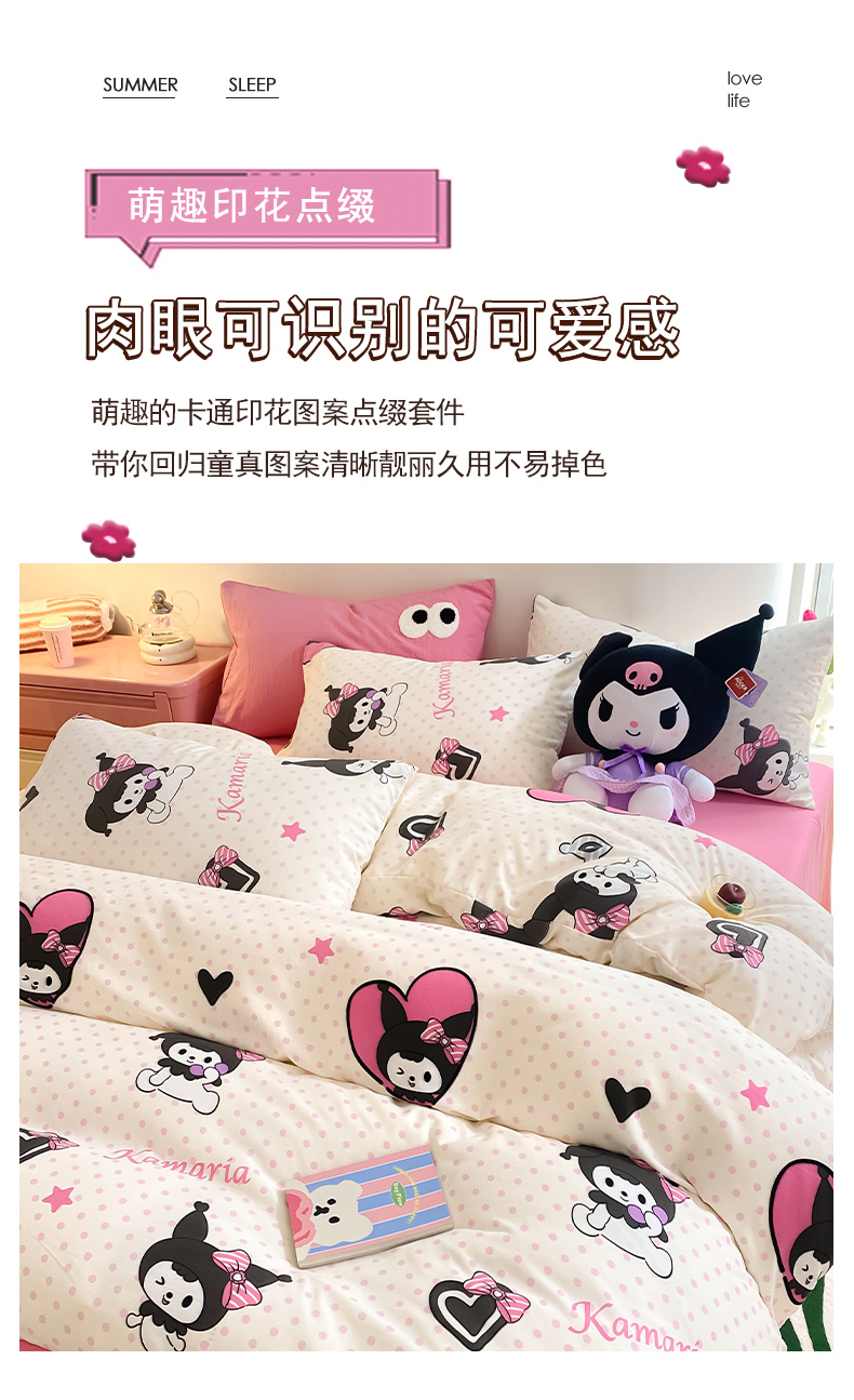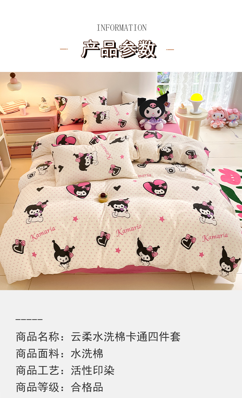 当前位置: 91家纺网 > 商品网购 > 床品套件 > 四件套 > 水洗棉四件套 > 葡萄家 2024新款双层纱云柔水洗棉萌趣卡通系列四件套(提供买家秀联系客服) 库洛小米