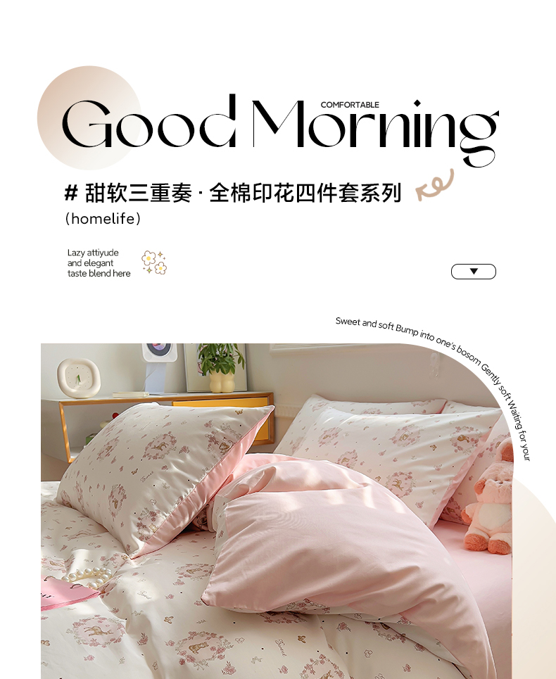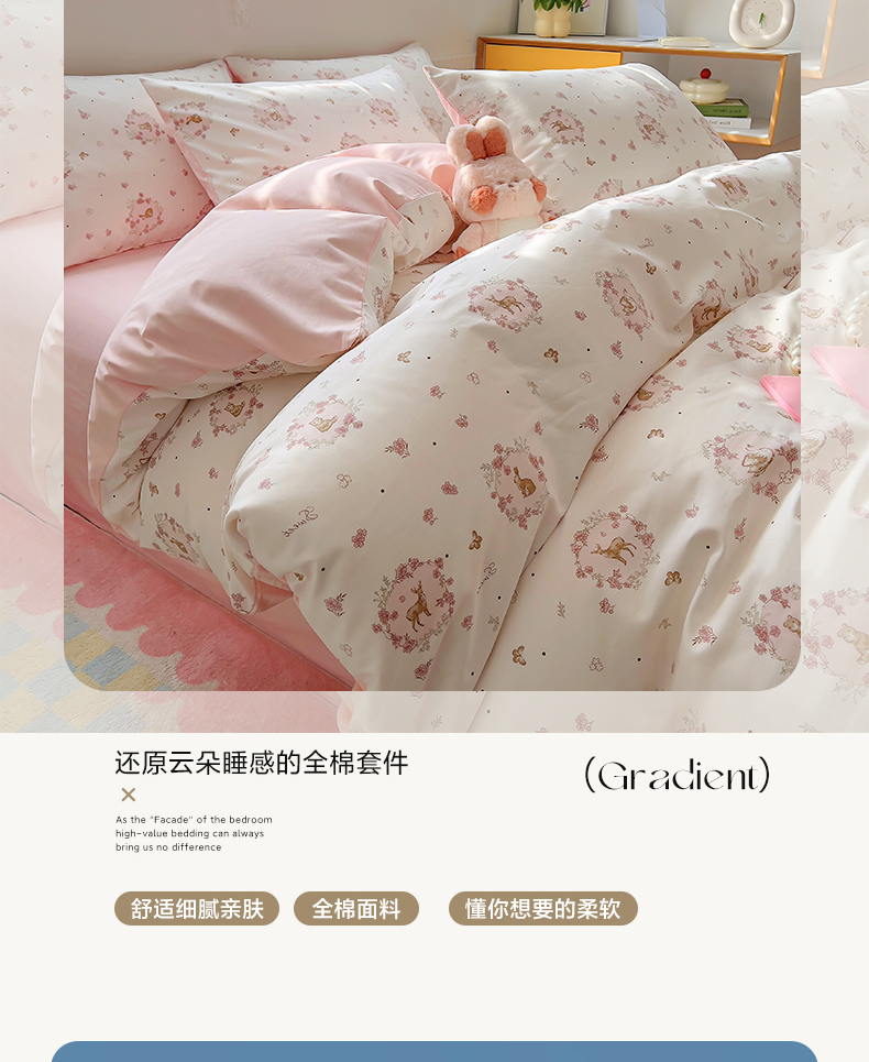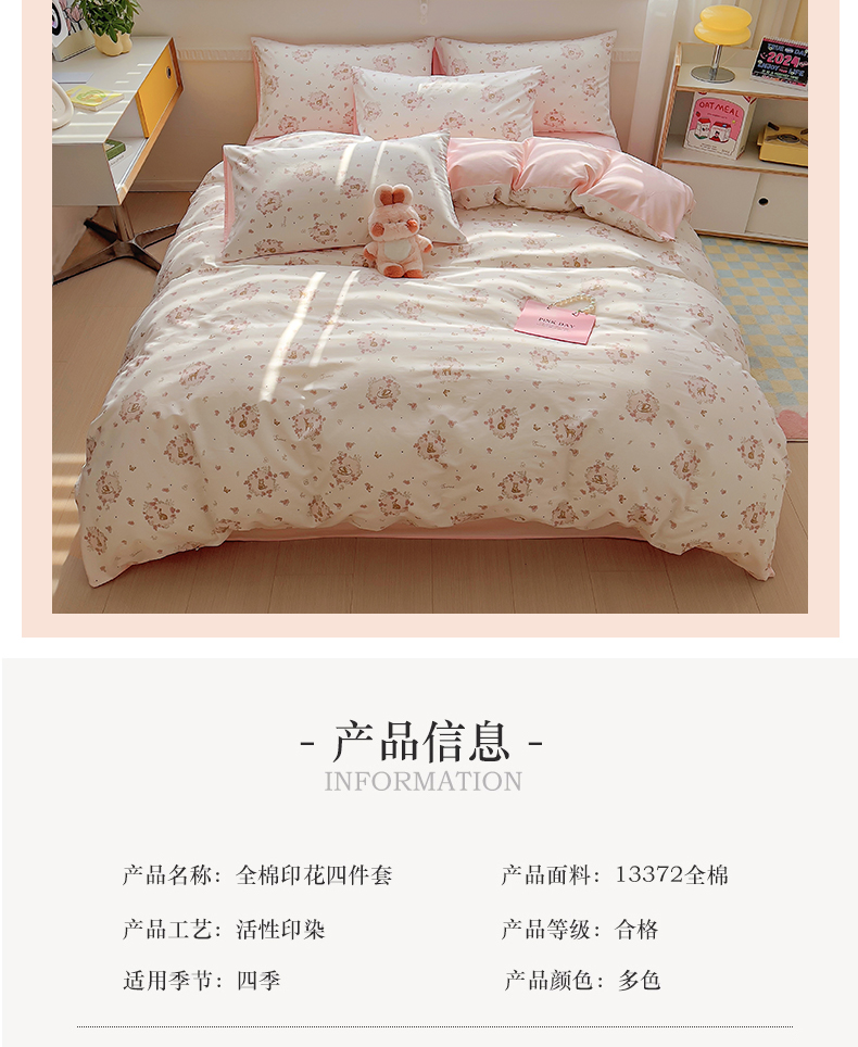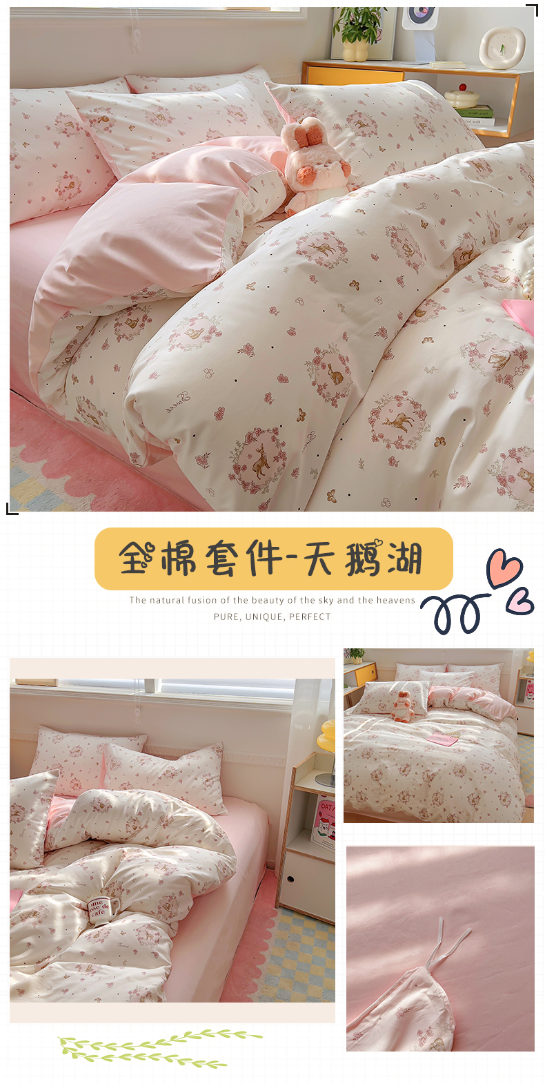 当前位置: 91家纺网 > 商品网购 > 床品套件 > 四件套 > 全棉普通四件套 > 百寐2024新款小清新碎花卡通13372全棉四件套纯棉床单床笠款 天鹅湖