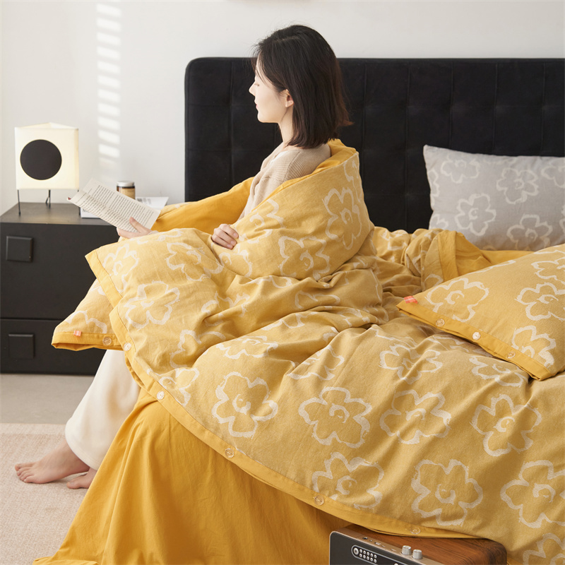 商品名称:安莱生活 2024新款双层纱大提花悠然纽扣宽边工艺款 悠然-姜黄