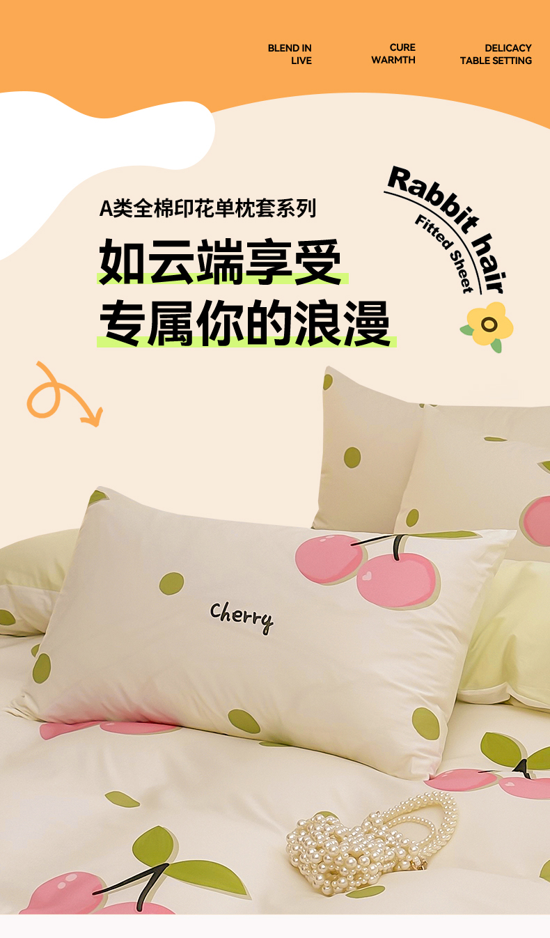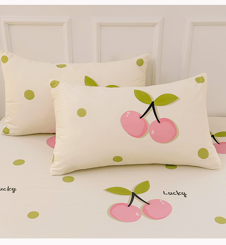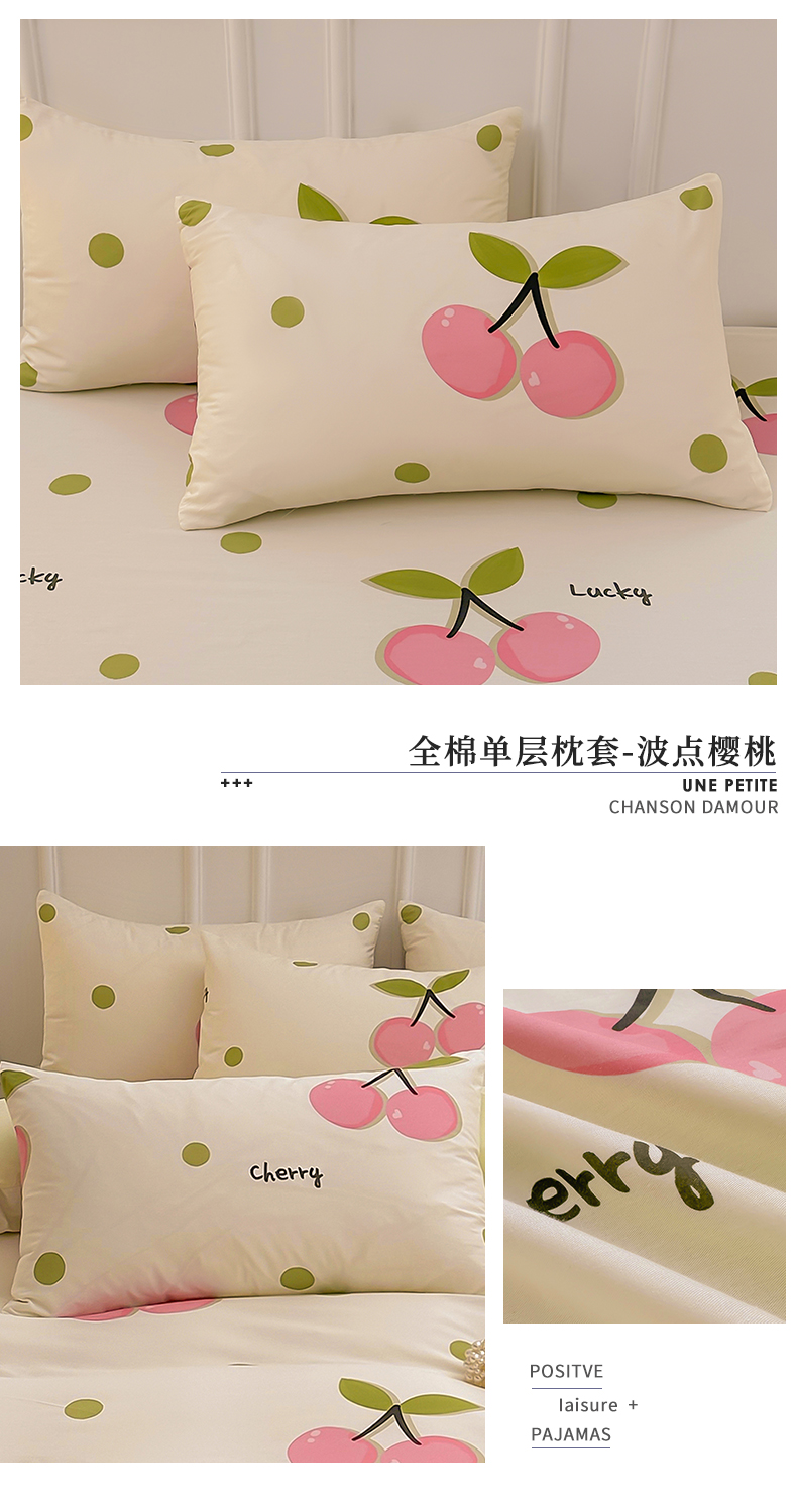 雯豆 2024新款全棉纯棉枕套一对装 全棉单层枕套-波点樱桃