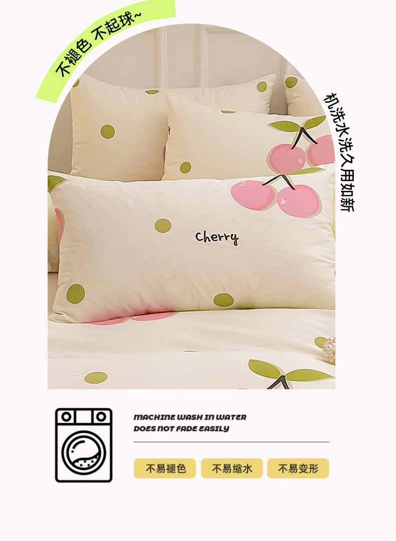 商品名称:雯豆 2024新款全棉纯棉枕套一对装 全棉单层枕套-波点樱桃