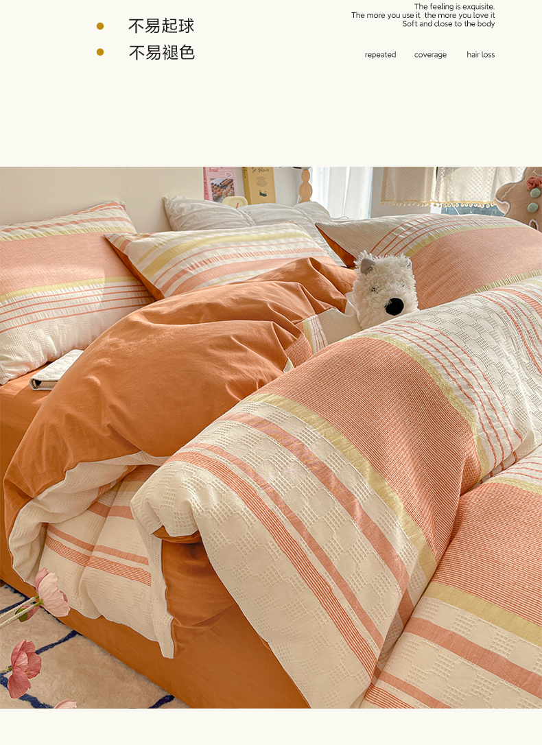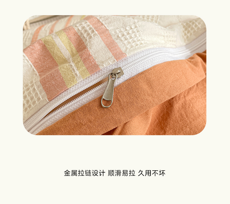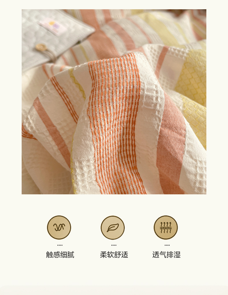 (总)雅居纺家纺 2022新款全棉华夫格普通款四件套,焦糖,米驼,奶油白,柔粉,深灰,雾蓝,月灰