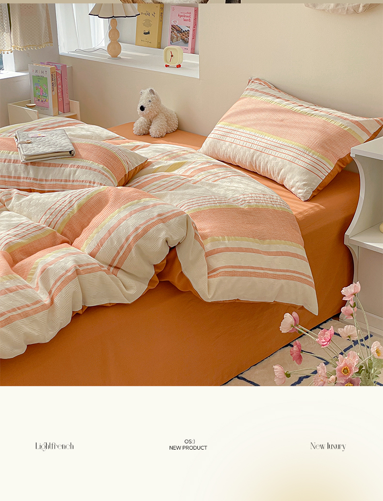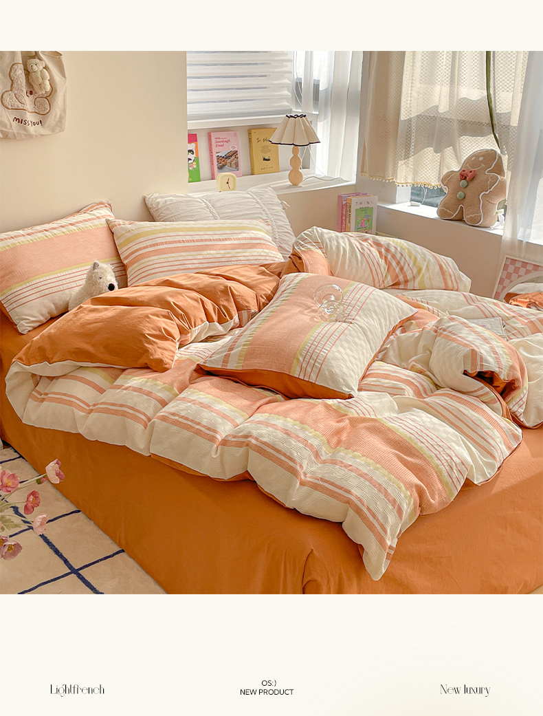 (总)雅居纺家纺 2022新款华夫格花边款四件套,梦幻蓝,橙色,纯白,米咖,浅粉,浅灰,优雅灰
