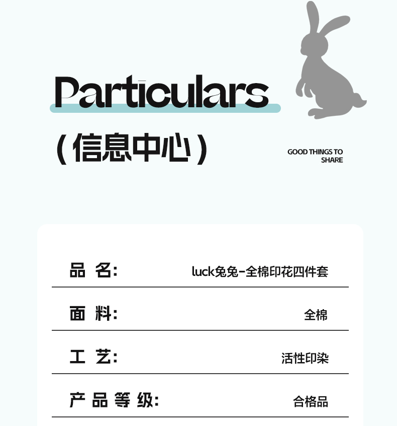 商品名称:(总)雅居纺家纺 2024新款全棉LUCK兔四件套