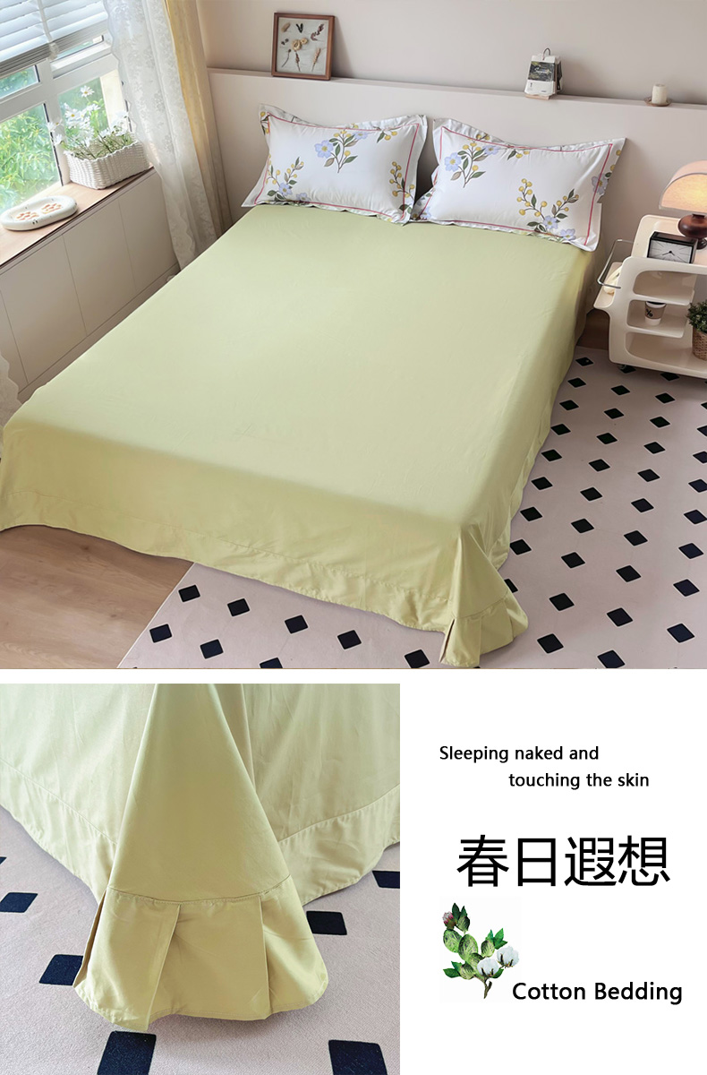 (总)艾迪尚家纺 2026法式韩版荷叶边纯色长绒棉纯棉单床单单品床单床单单件,薄荷青灰,冰川蓝香草白,茉绿奶芙,奶芙慕粉,青提絮语,柔杏浅绿,瑞绿慕斯粉,雾蓝杏语,云白芽绿,云灰仙女粉