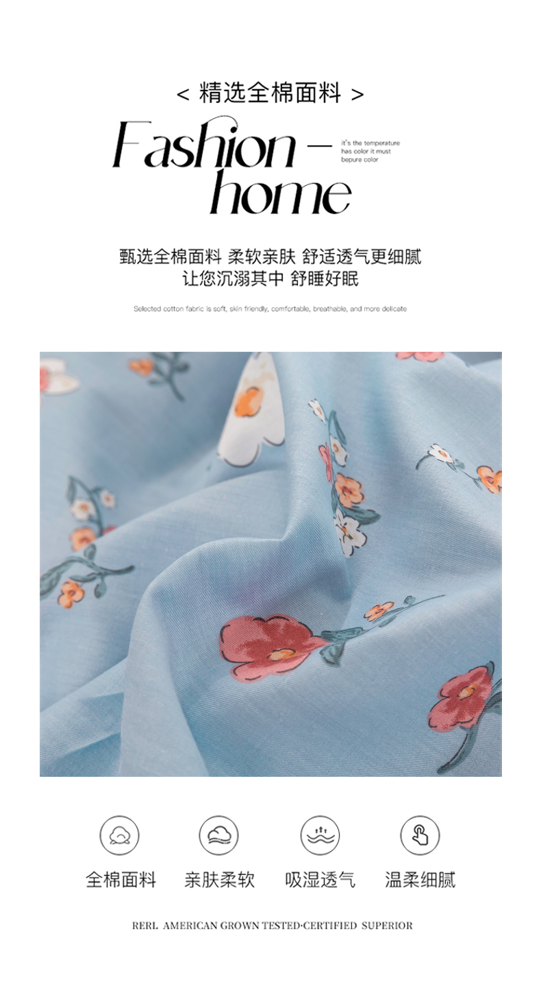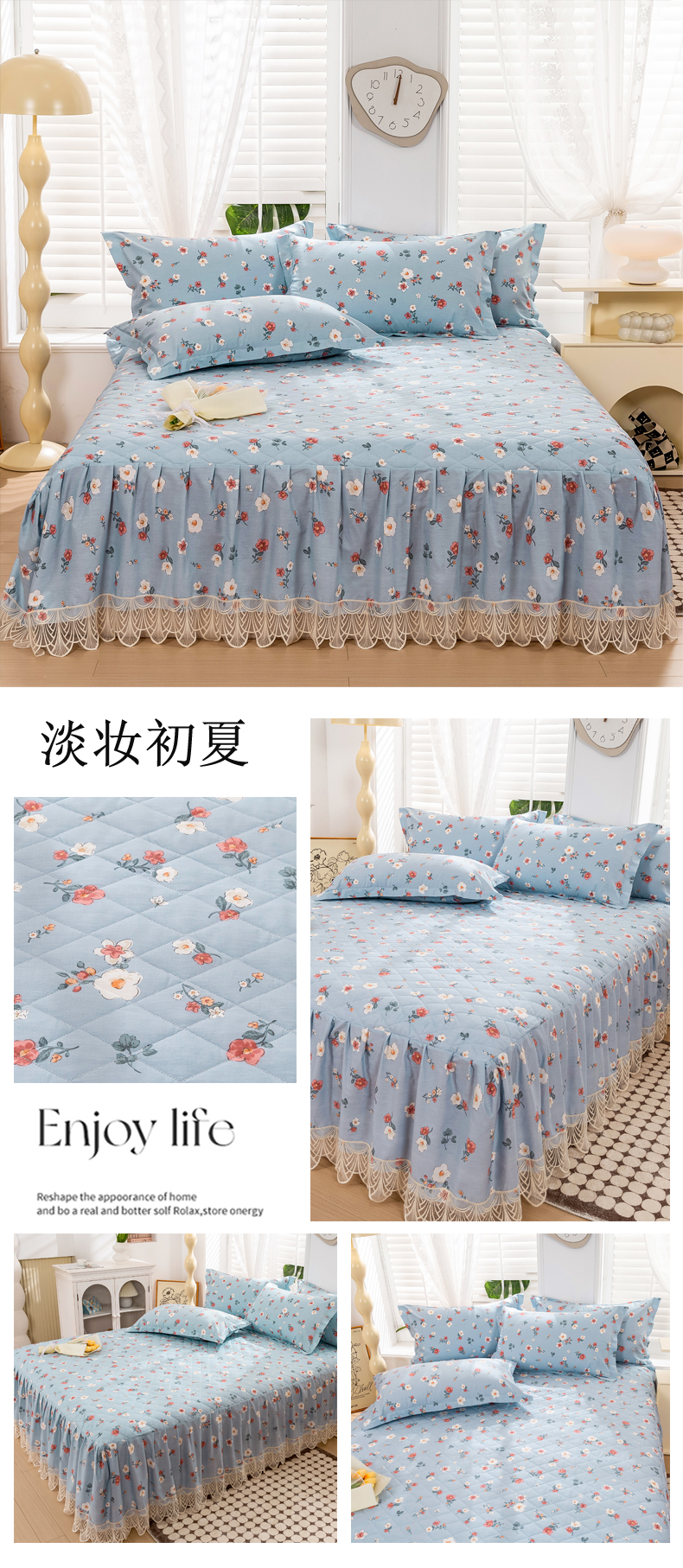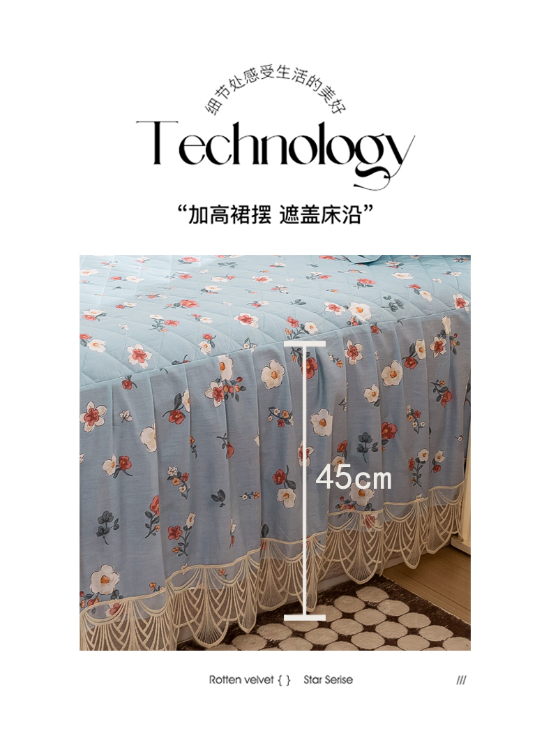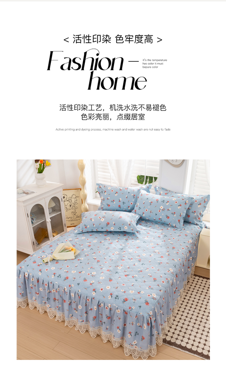 商品名称:琉宿家纺 2025新款全棉13372蕾丝夹棉印花床裙 淡妆初夏