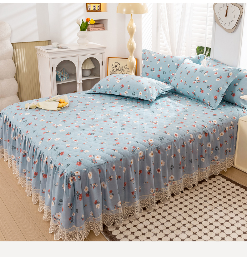 琉宿家纺 2025新款全棉13372蕾丝夹棉印花床裙 淡妆初夏