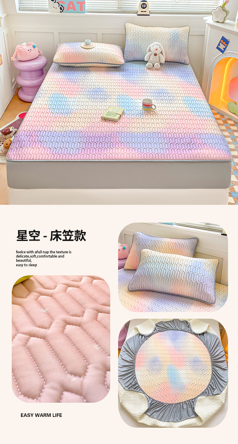 商品名称:米帛家纺 2024新款A类凉感丝卡通乳胶凉席-床笠款 星空