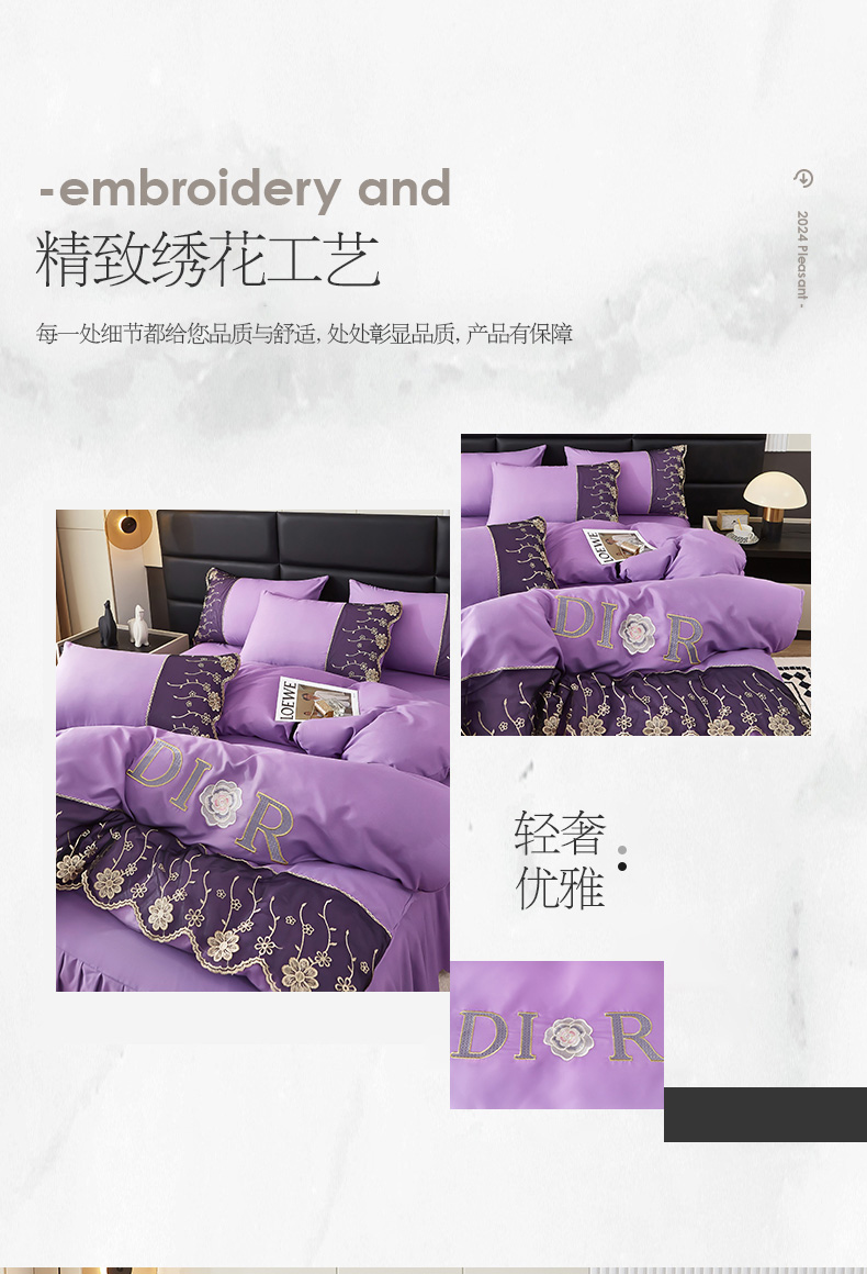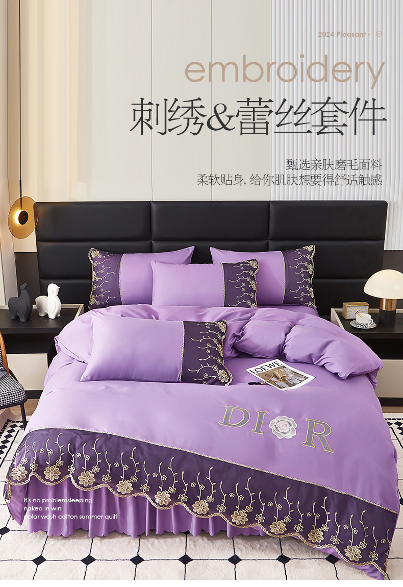 莉莉安 2025新款亲肤磨毛蕾丝刺绣四件套-蒂欧系列 蒂欧-江南紫