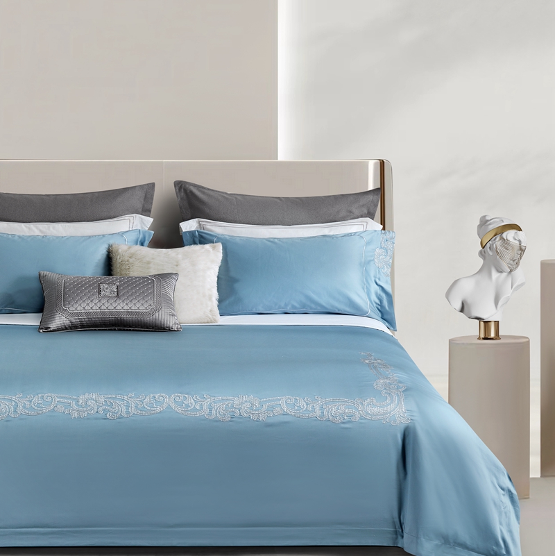 时亿家居 2024新款140支长绒棉四件套半岛日记 半岛日记-天空蓝