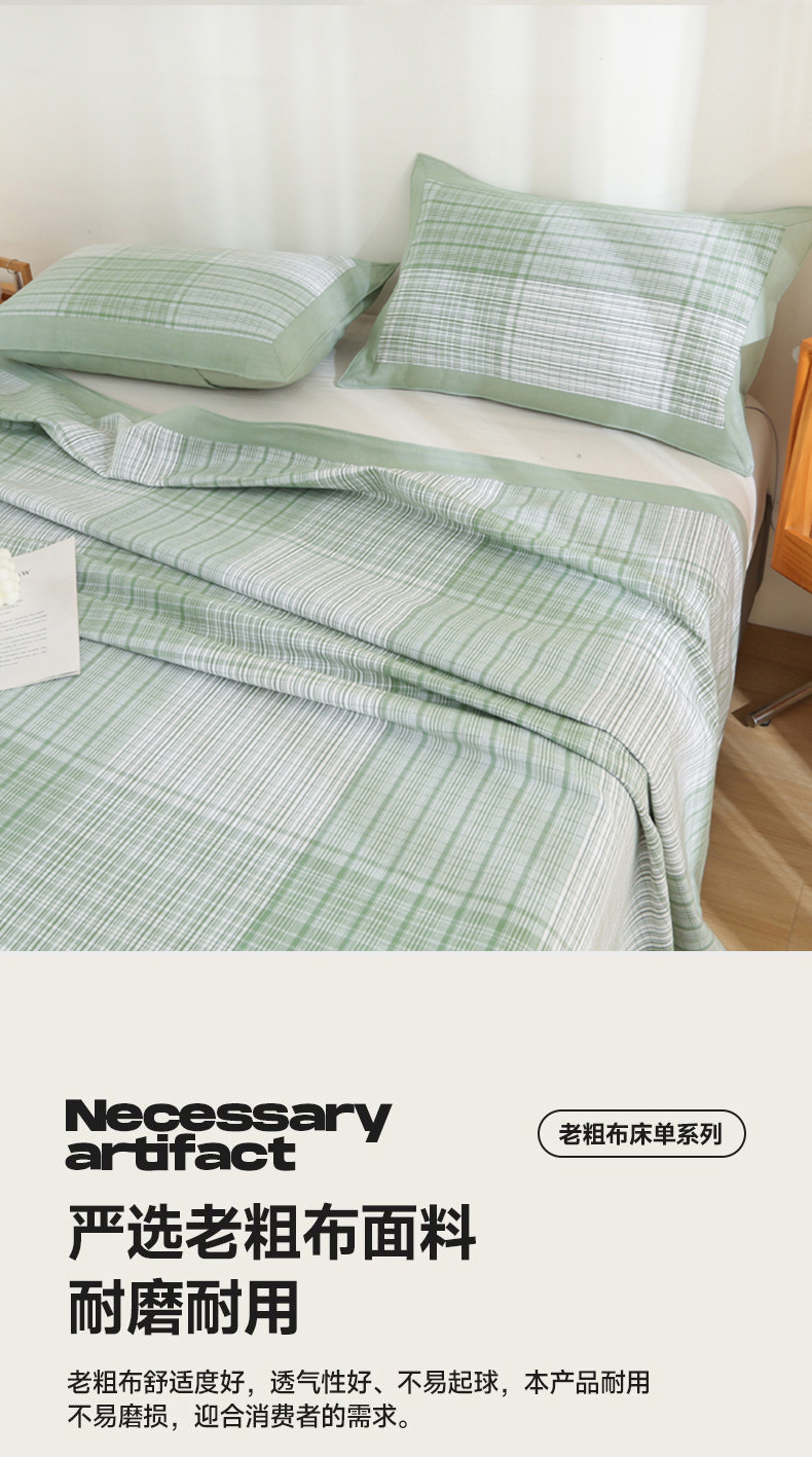 (总)首爱家纺 2025新款色织老粗布床单老粗布凉席三件套,迟暮,春燕,错落,淡墨,粉恋,红尘,花格,咖格,绿条,棋盘,浅陌,如夏,森眸,言格,樱络