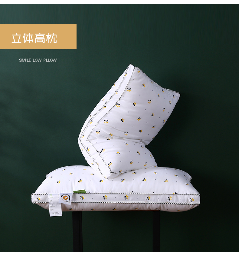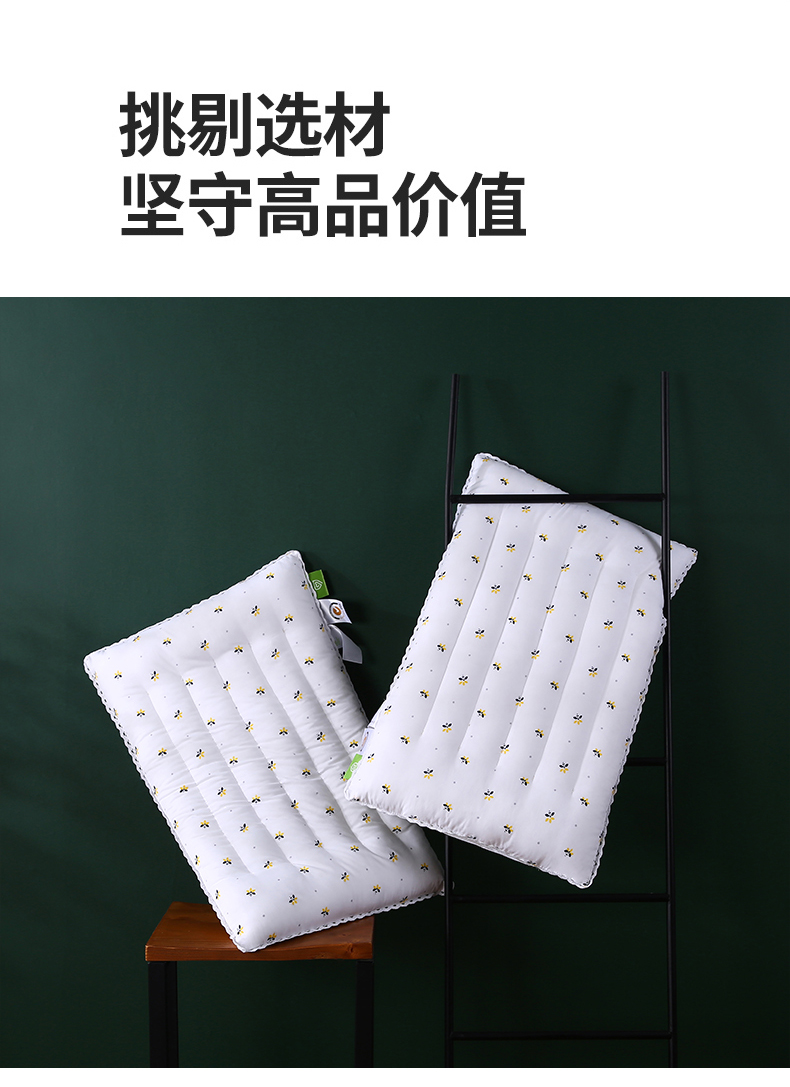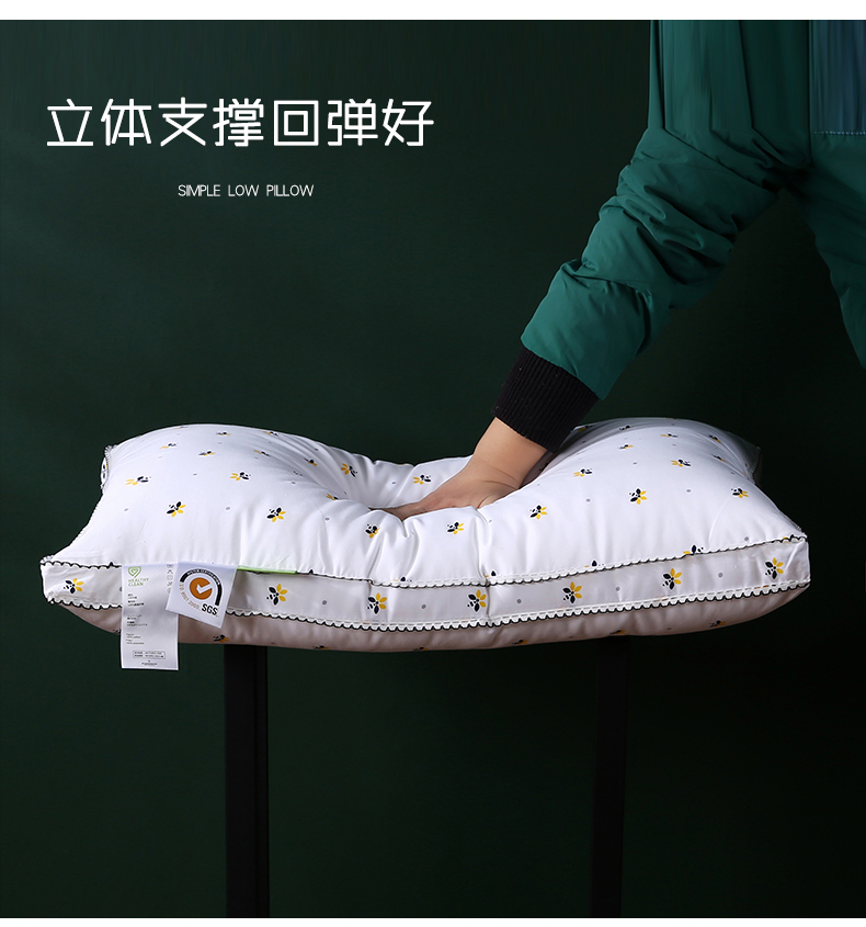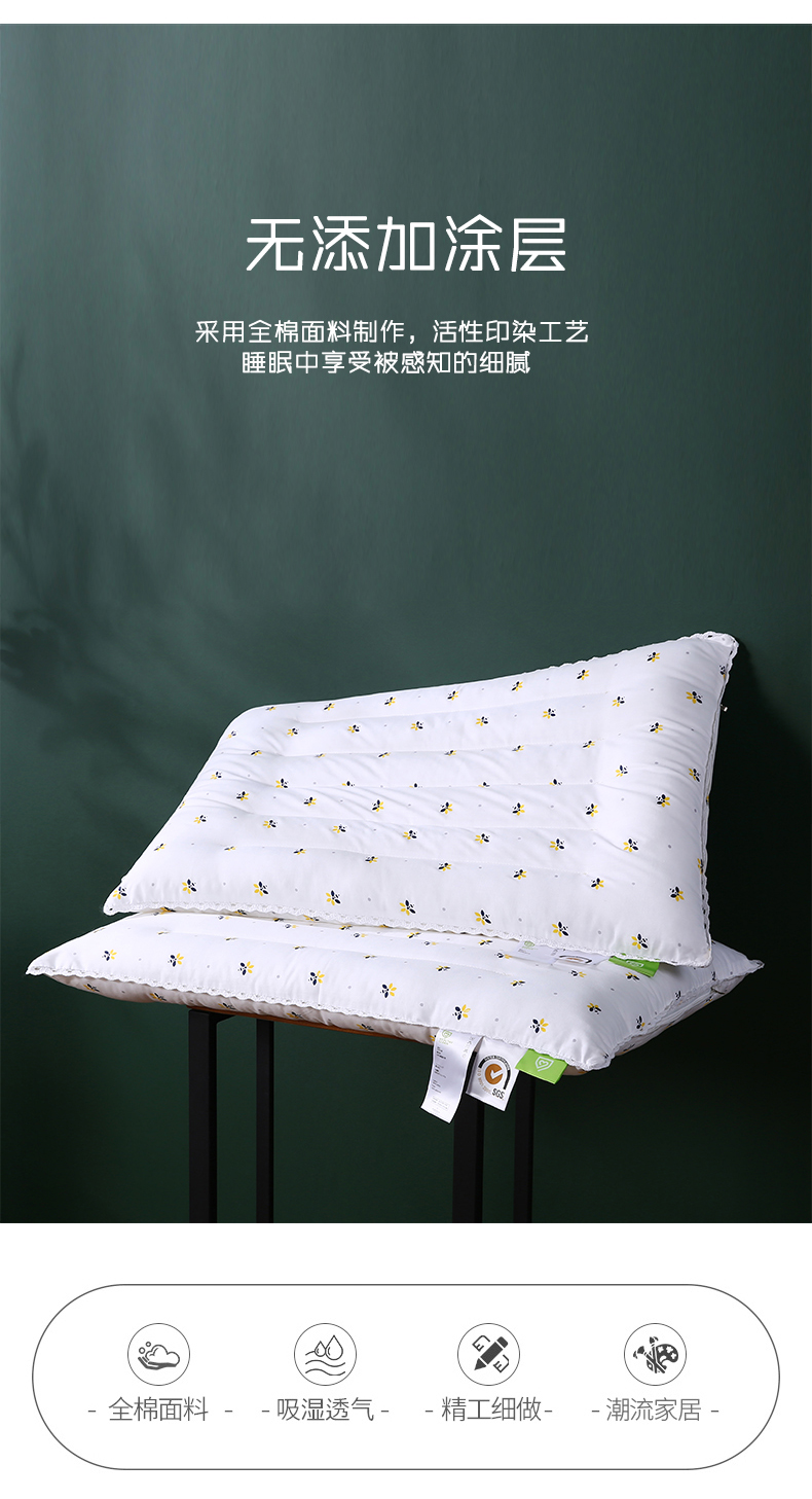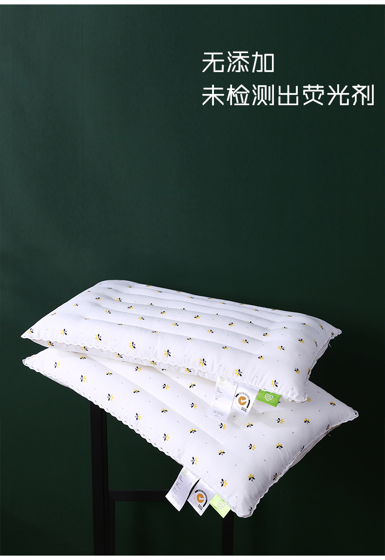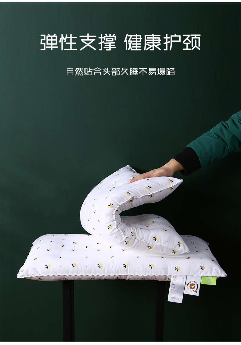 (总)沃兰国际 全棉贡缎小蜜蜂羽丝绒可水洗护颈枕芯定型单人枕头