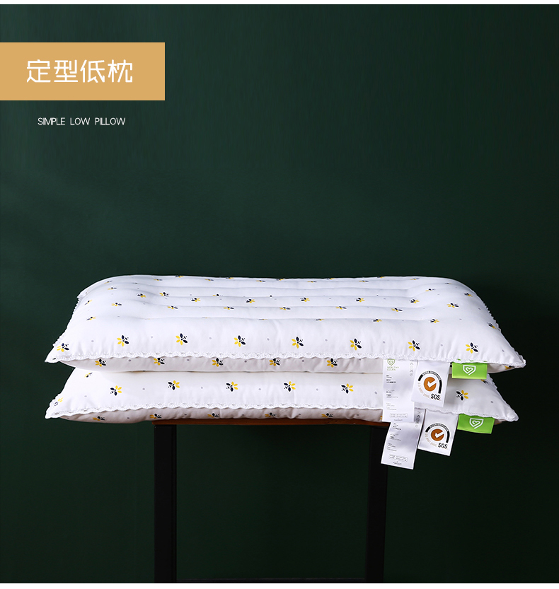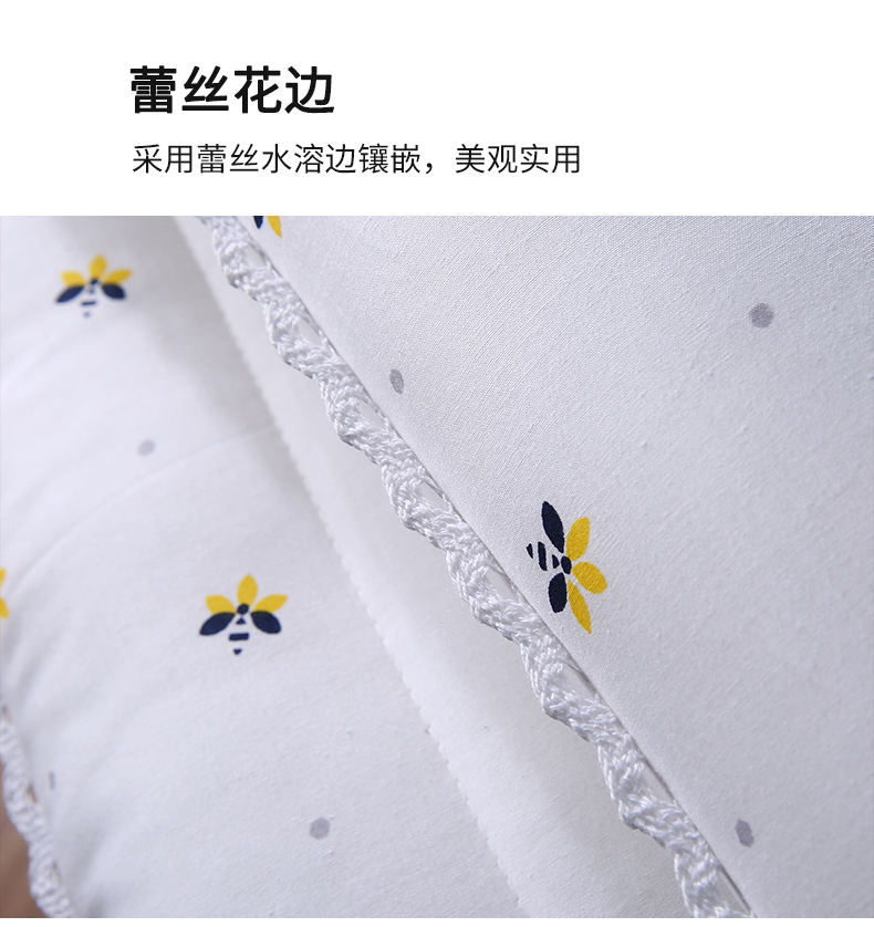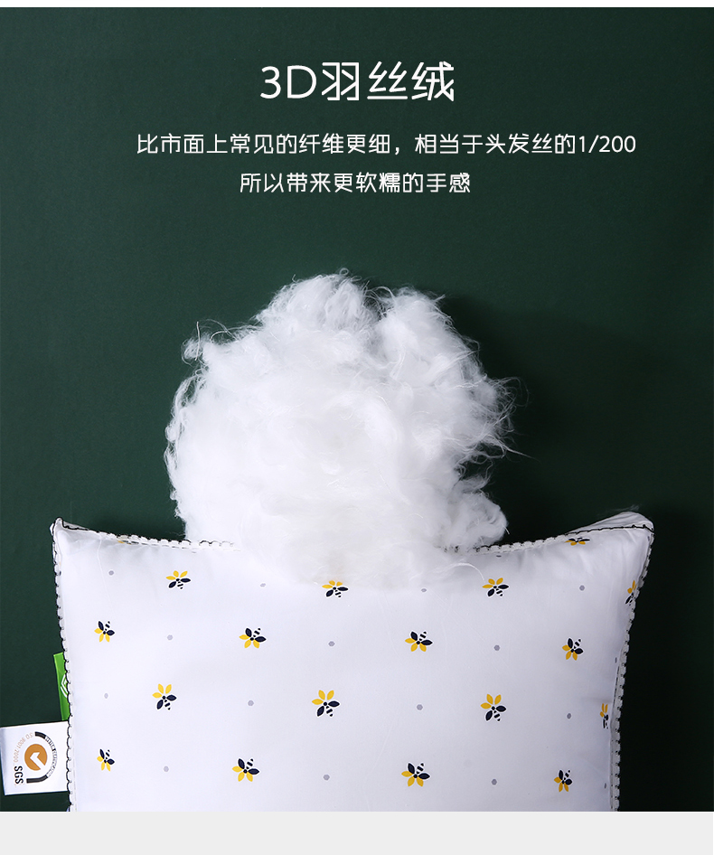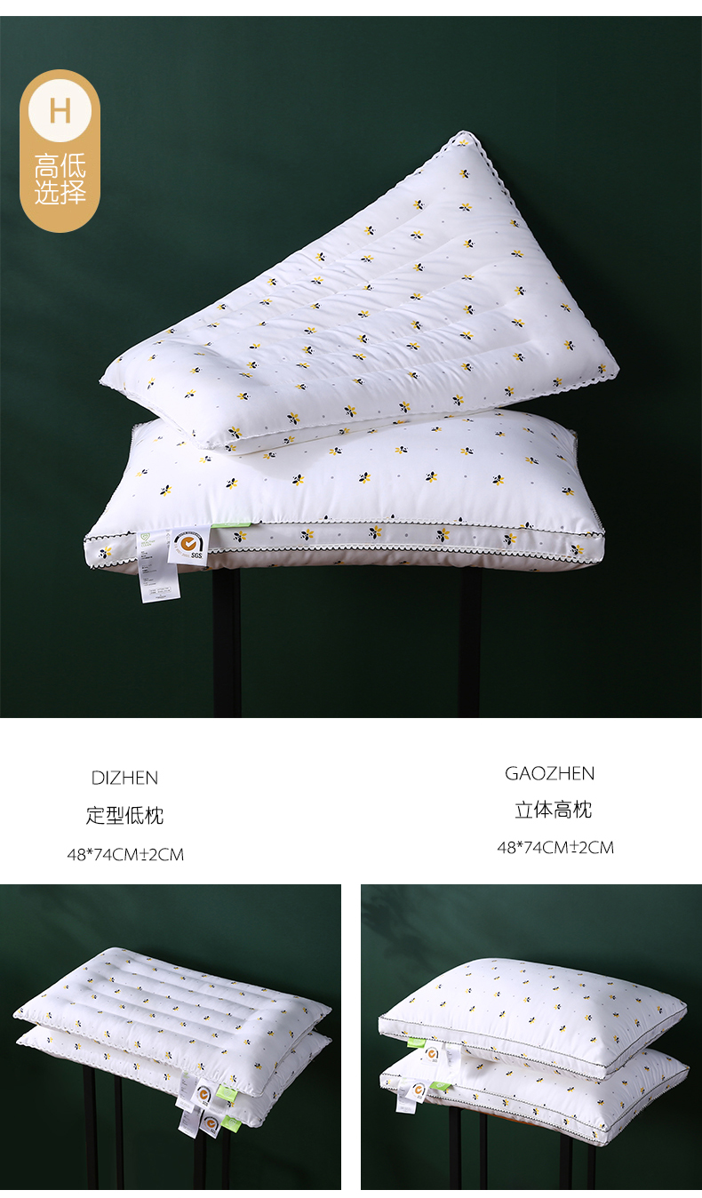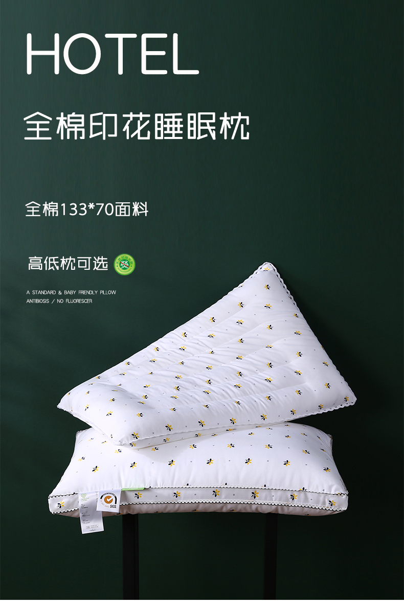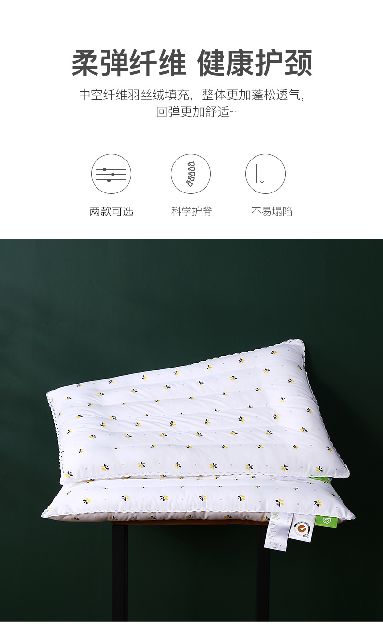 (总)沃兰国际 全棉贡缎小蜜蜂羽丝绒可水洗护颈枕芯定型单人枕头