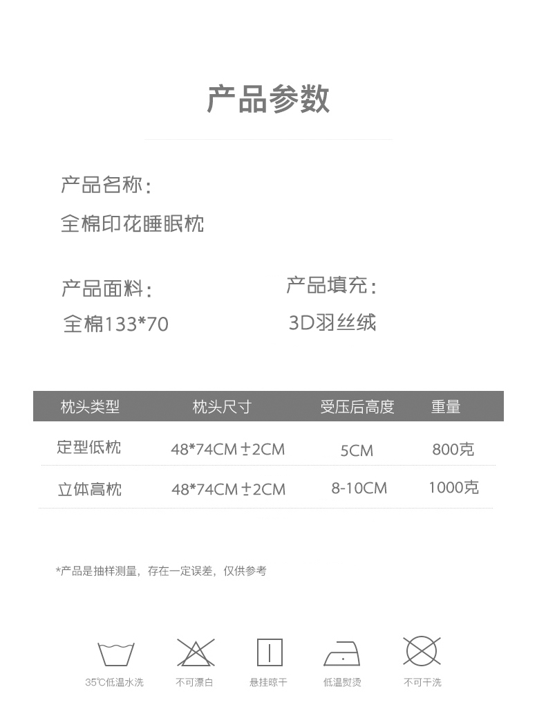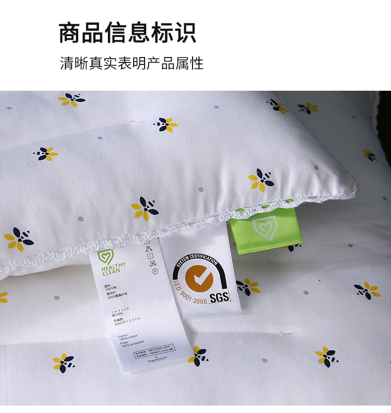 商品名称:(总)沃兰国际 全棉贡缎小蜜蜂羽丝绒可水洗护颈枕芯定型单人枕头