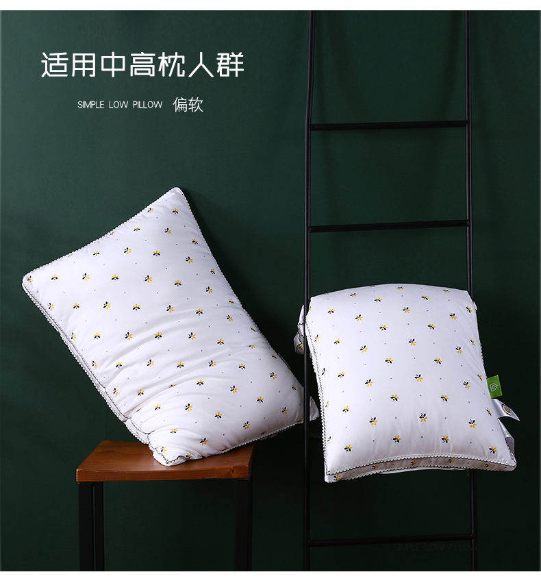 2022新品全棉防羽布低枕羽丝绒枕头水洗定型护颈单人枕芯,全棉防羽布简约定型低枕