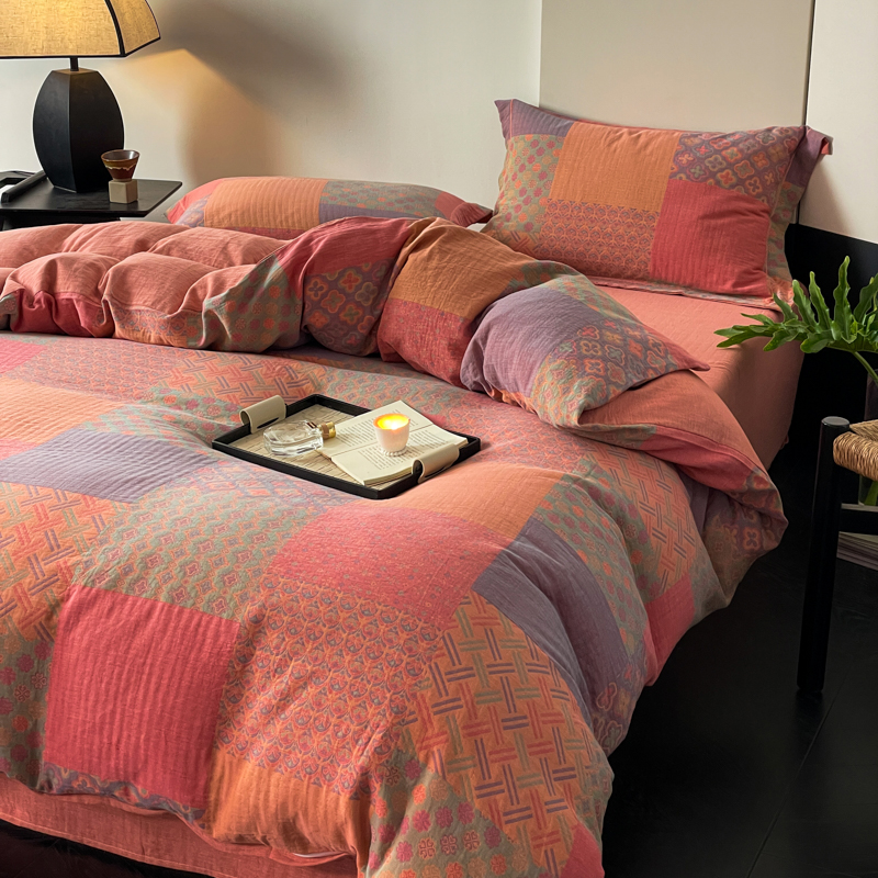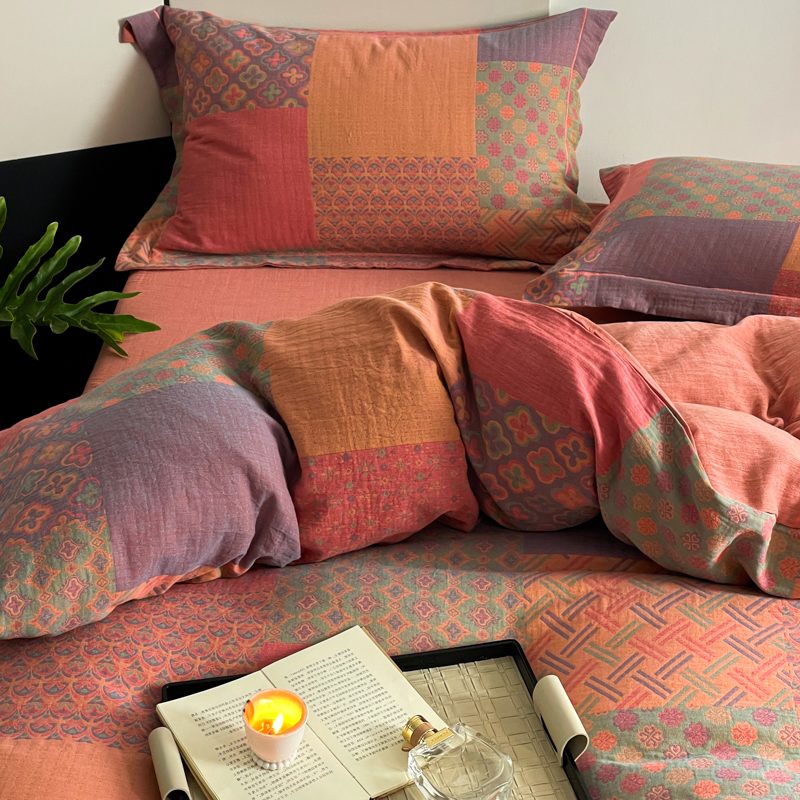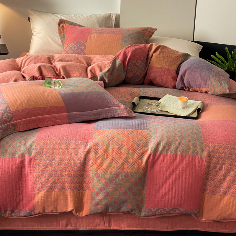 睡棉坊 2024新款全棉色织提花双层纱复古单被套 百纳