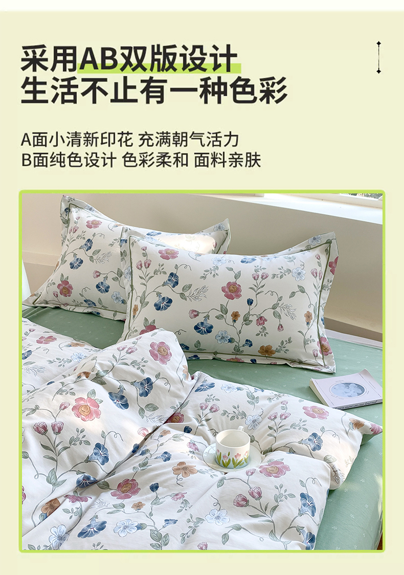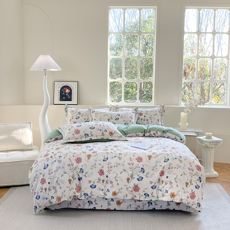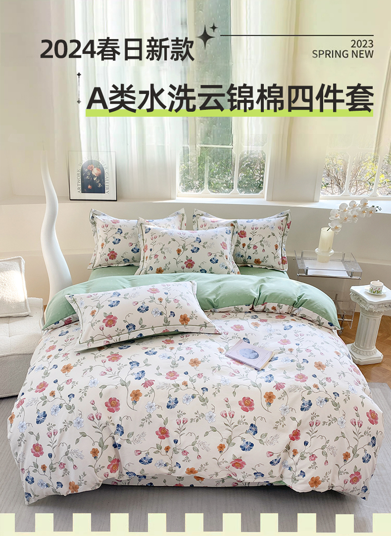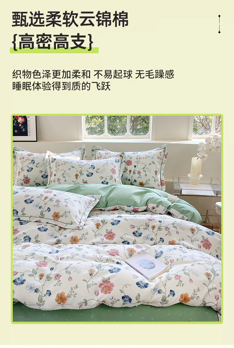 当前位置: 91家纺网 > 商品网购 > 床品套件 > 四件套 > 全棉普通四件套 > 家贝爱 2024春日新款A类精选高支高密水洗云锦棉四件套 初夏