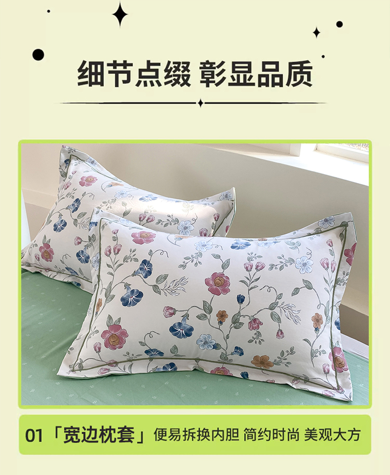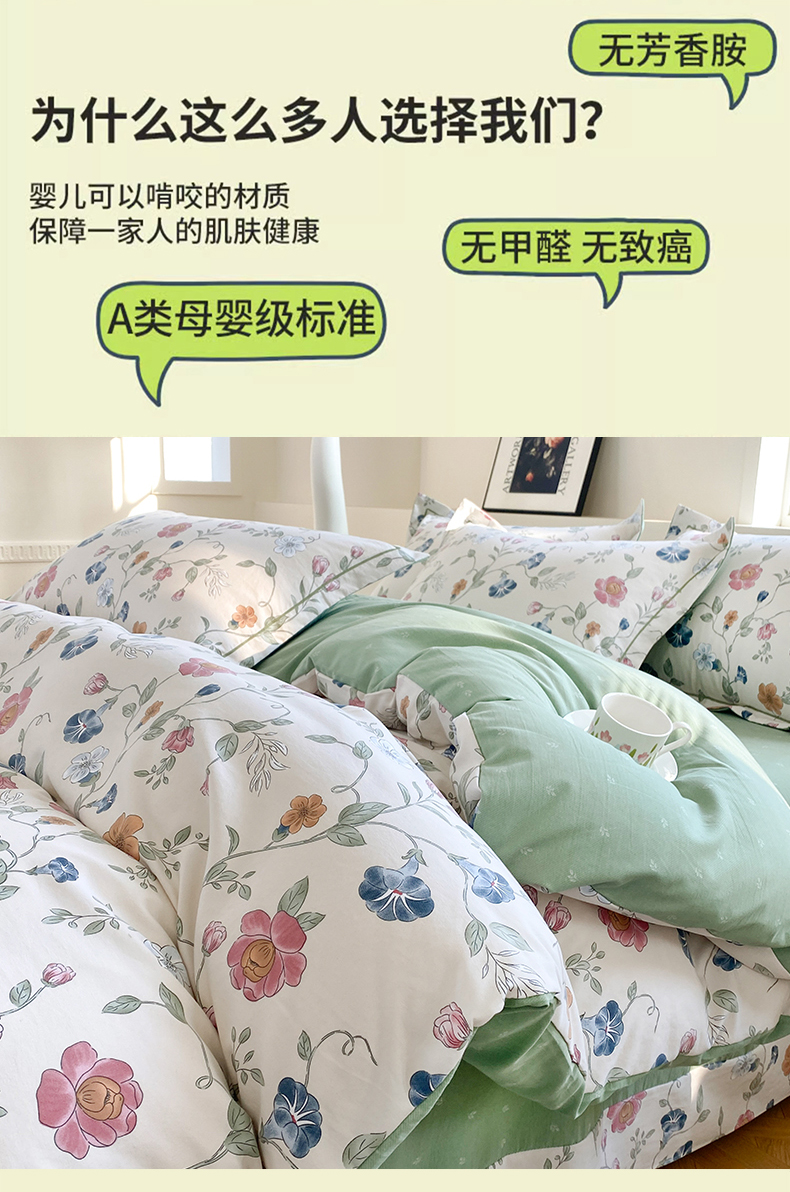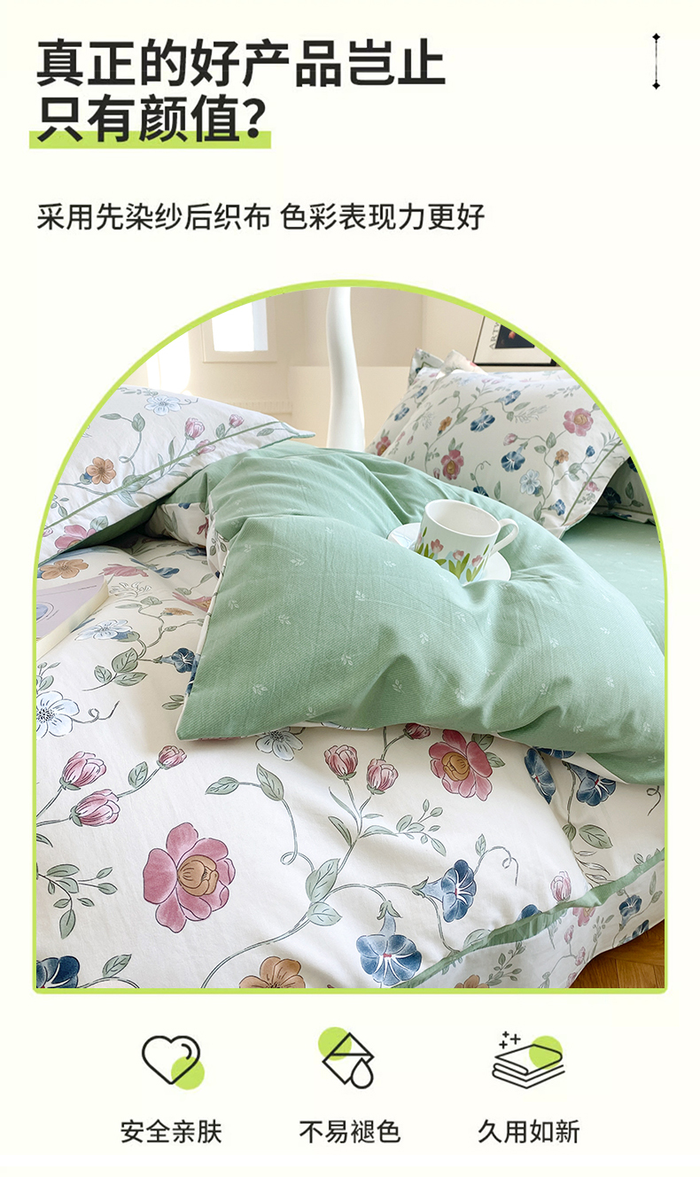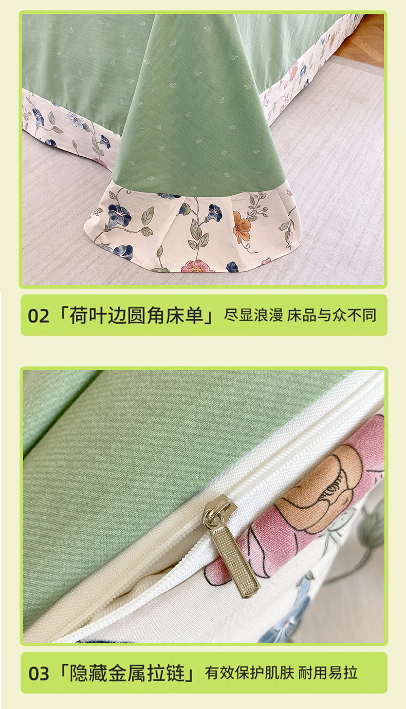 当前位置: 91家纺网 > 商品网购 > 床品套件 > 四件套 > 全棉普通四件套 > 家贝爱 2024春日新款A类精选高支高密水洗云锦棉四件套 初夏