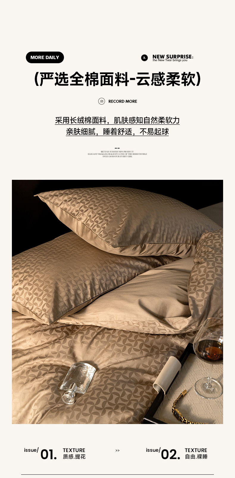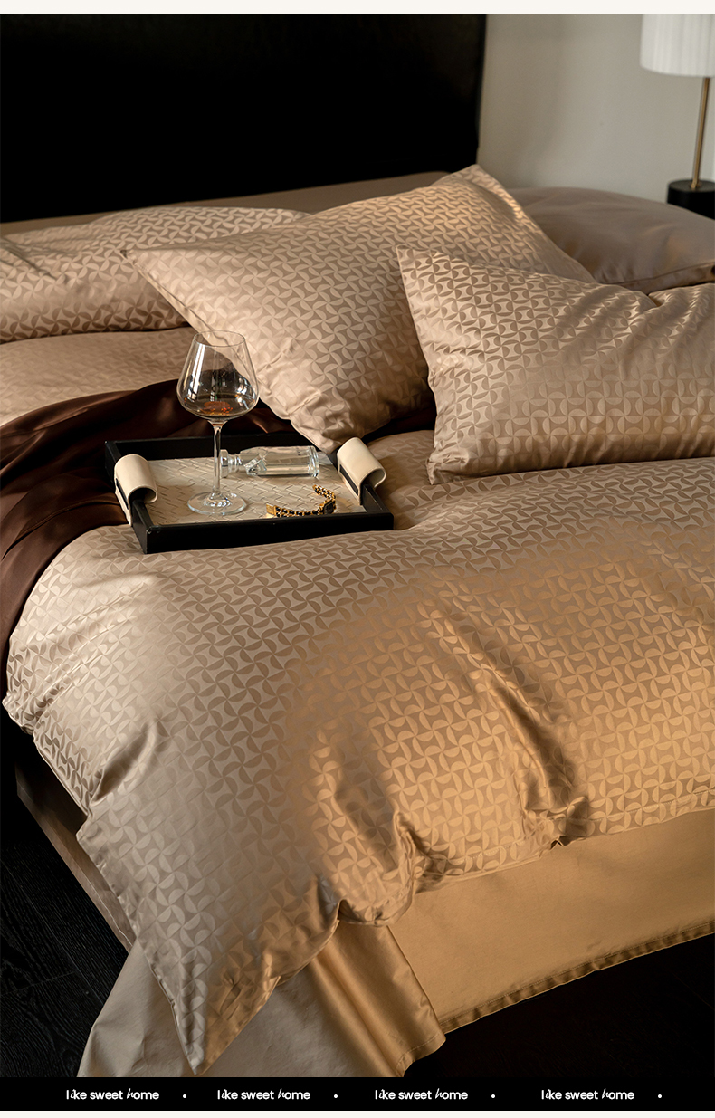 当前位置: 91家纺网 > 商品网购 > 床品套件 > 四件套 > 长绒棉四件套 > 寐眠 2024新款100支纯棉长绒棉提花四件套 浮光跃金