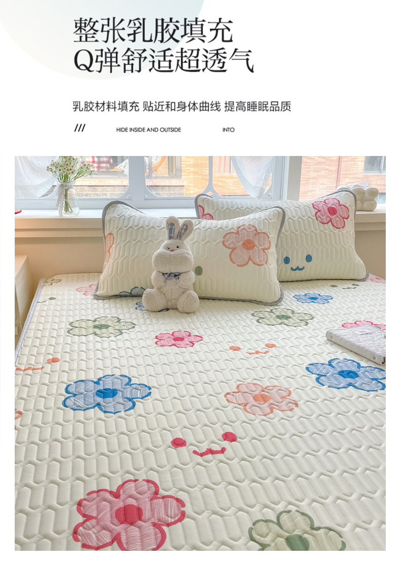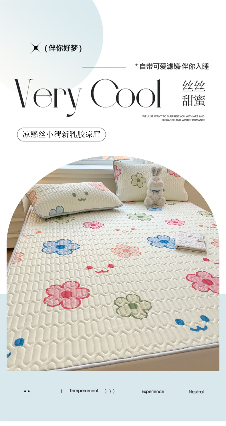 商品名称:柒月家居 2024新款贴身舒适厚度0.5小清新乳胶凉席 微笑花花