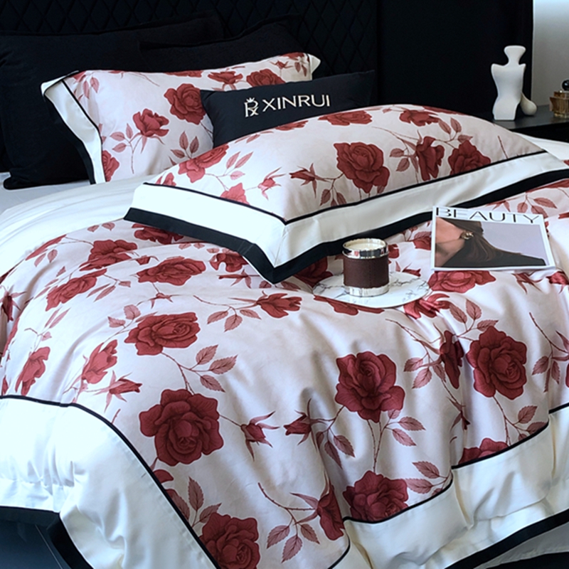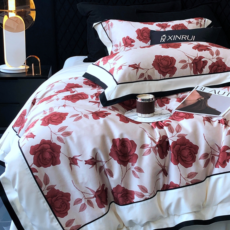 (总)馨蕊家居 2025新款春夏新品天丝印花80SLF奥地利兰精天丝四件套-告白,天丝告白-蔷薇粉,天丝告白-婉若紫