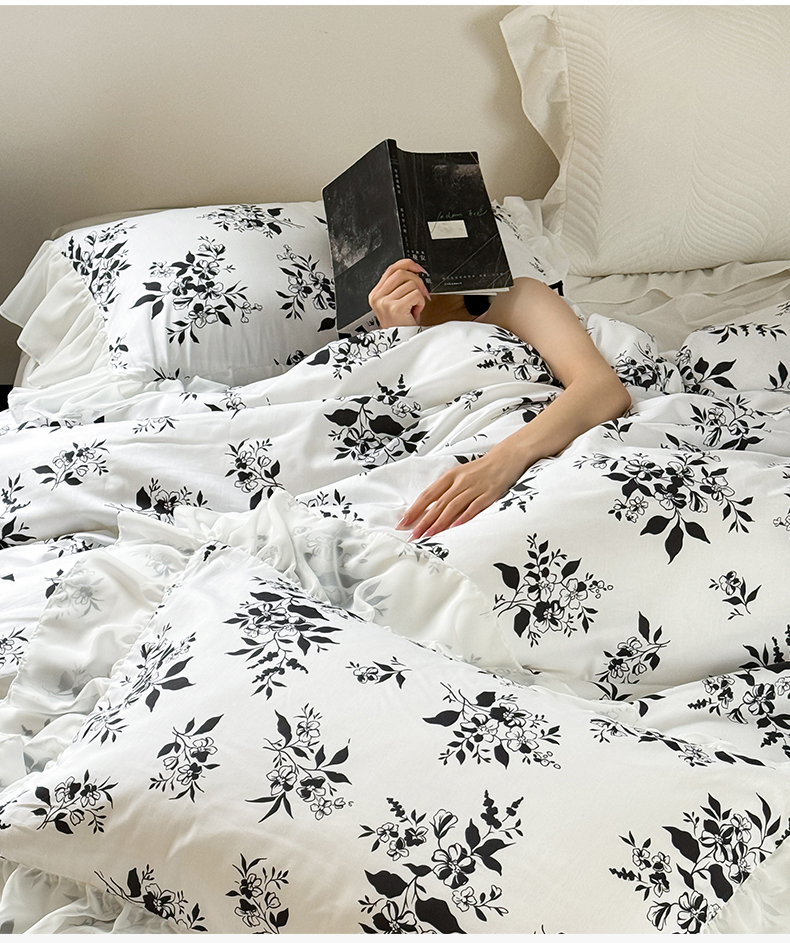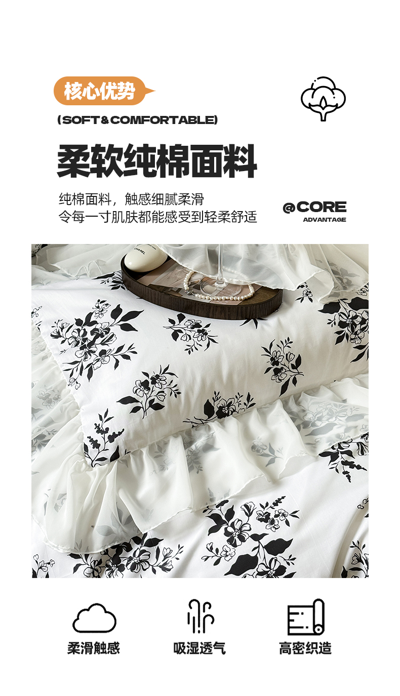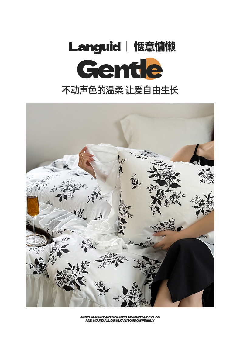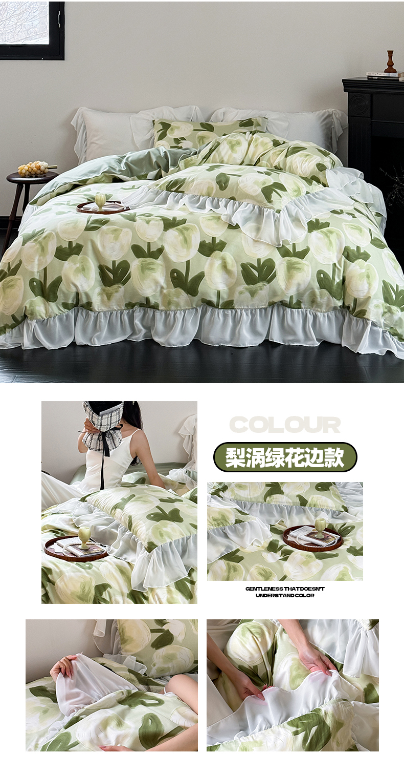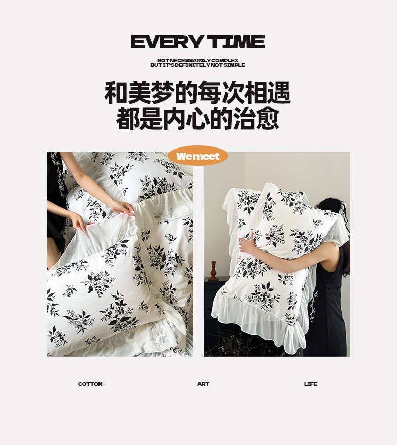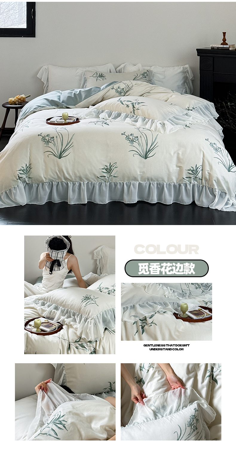 (总)窝米 2025新款数码印花100支长绒棉纯棉工艺花边款四件套-晚意,晚意