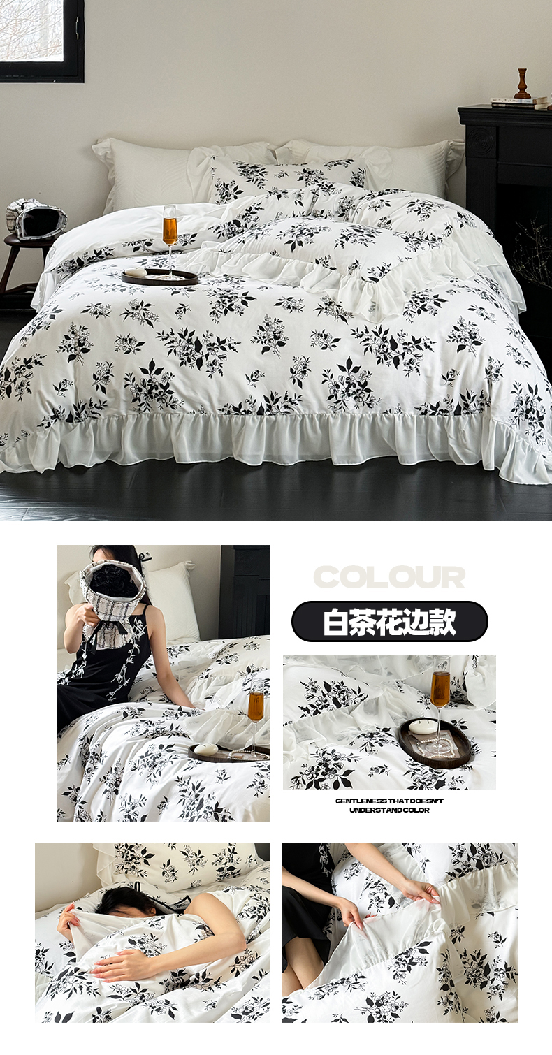 (总)窝米 2024新款纯棉法式复古雪纺大花边四件套