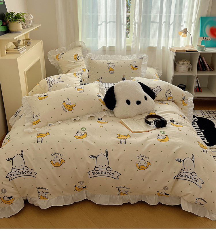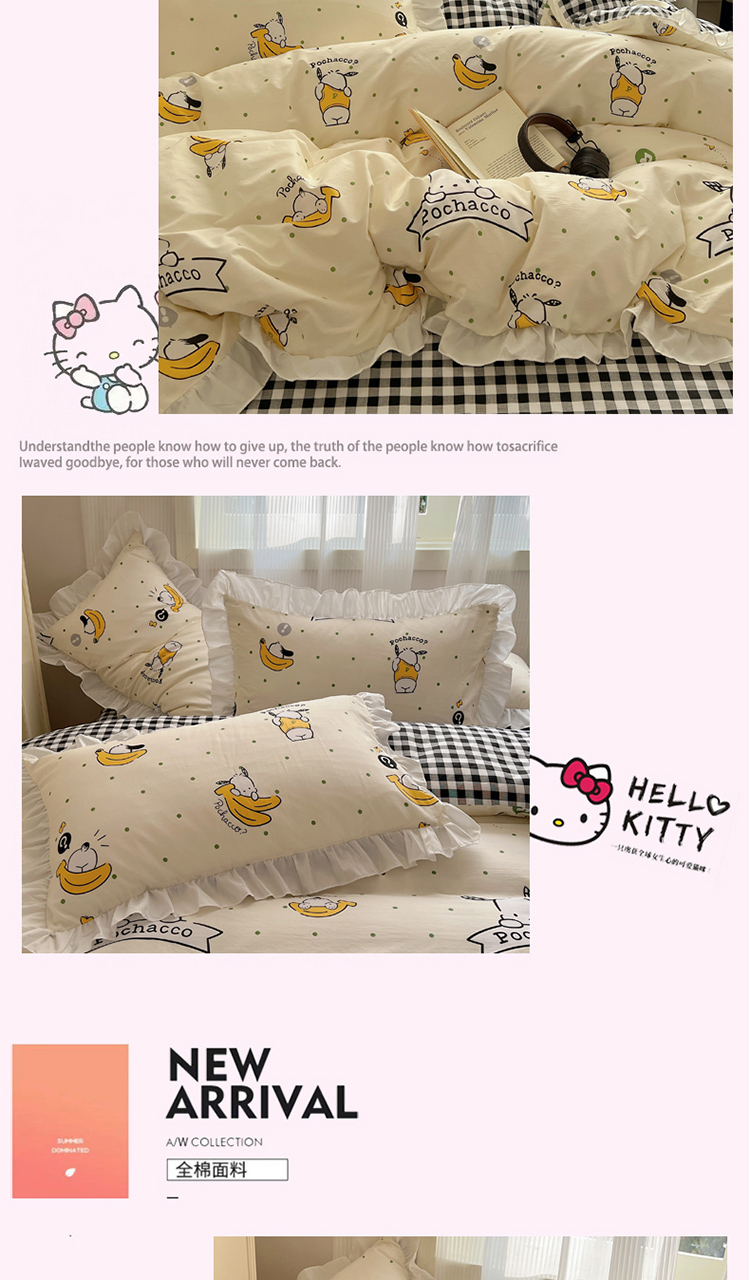 三朵 2024年全棉白色花边三丽鸥系列四件套 花边-香蕉帕恰狗