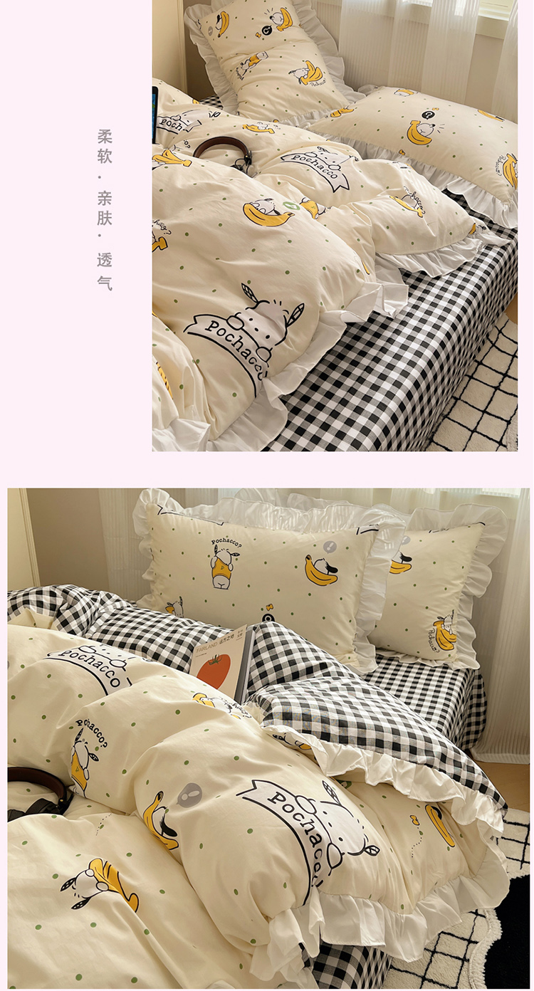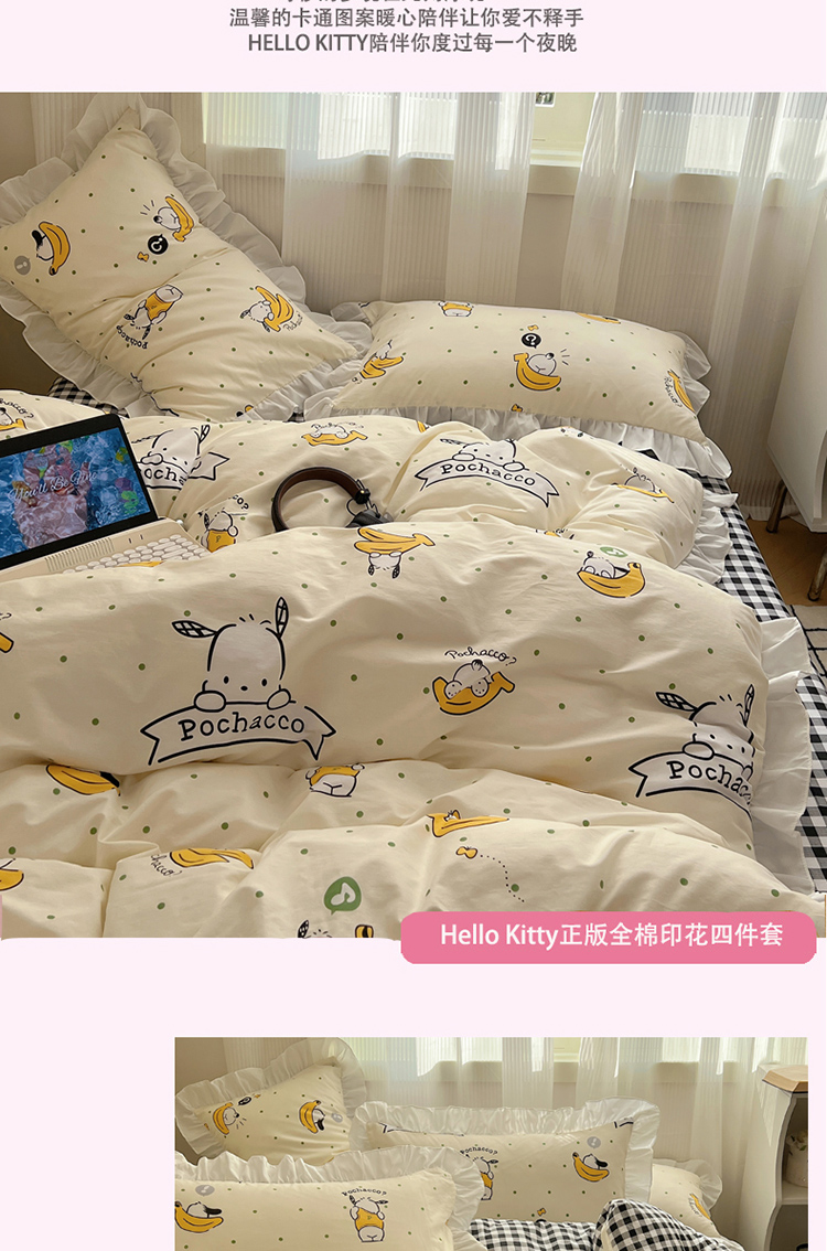 商品名称:三朵 2024年全棉白色花边三丽鸥系列四件套 花边-香蕉帕恰狗