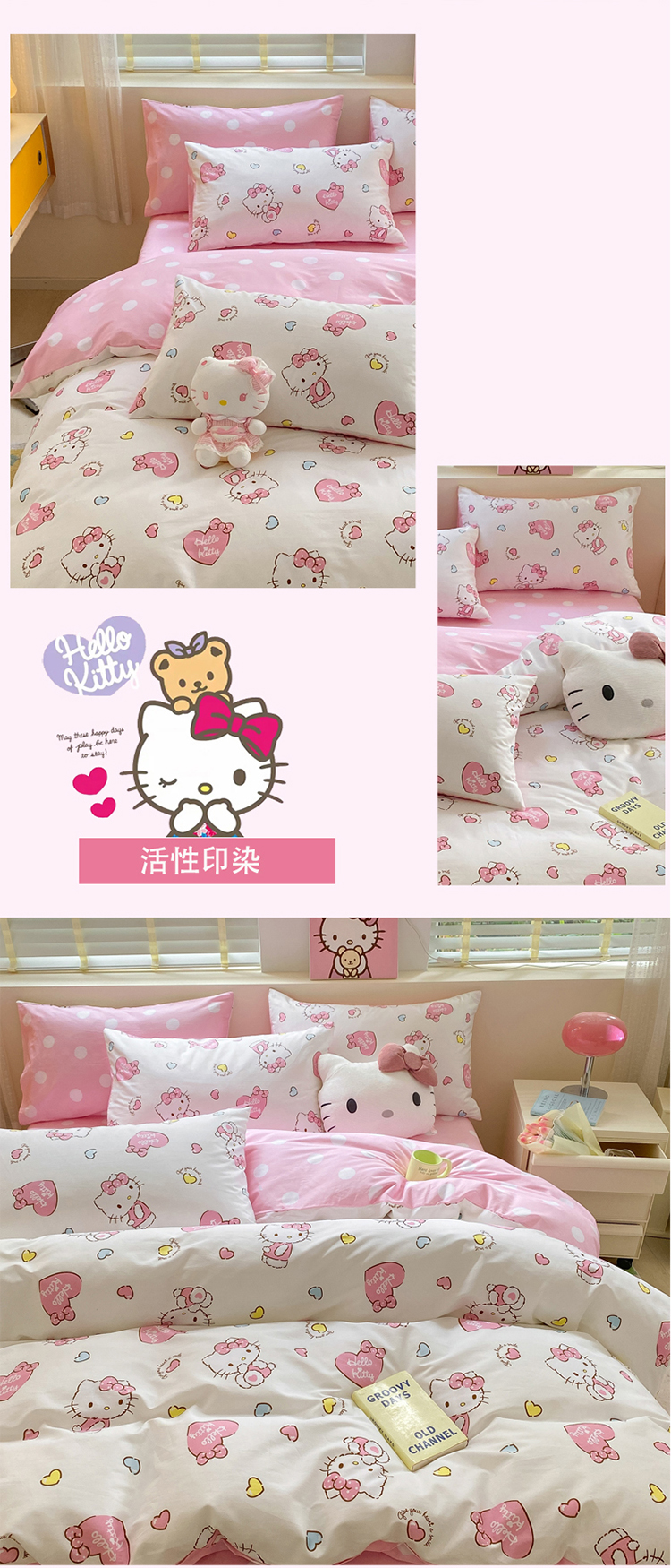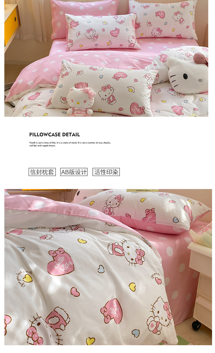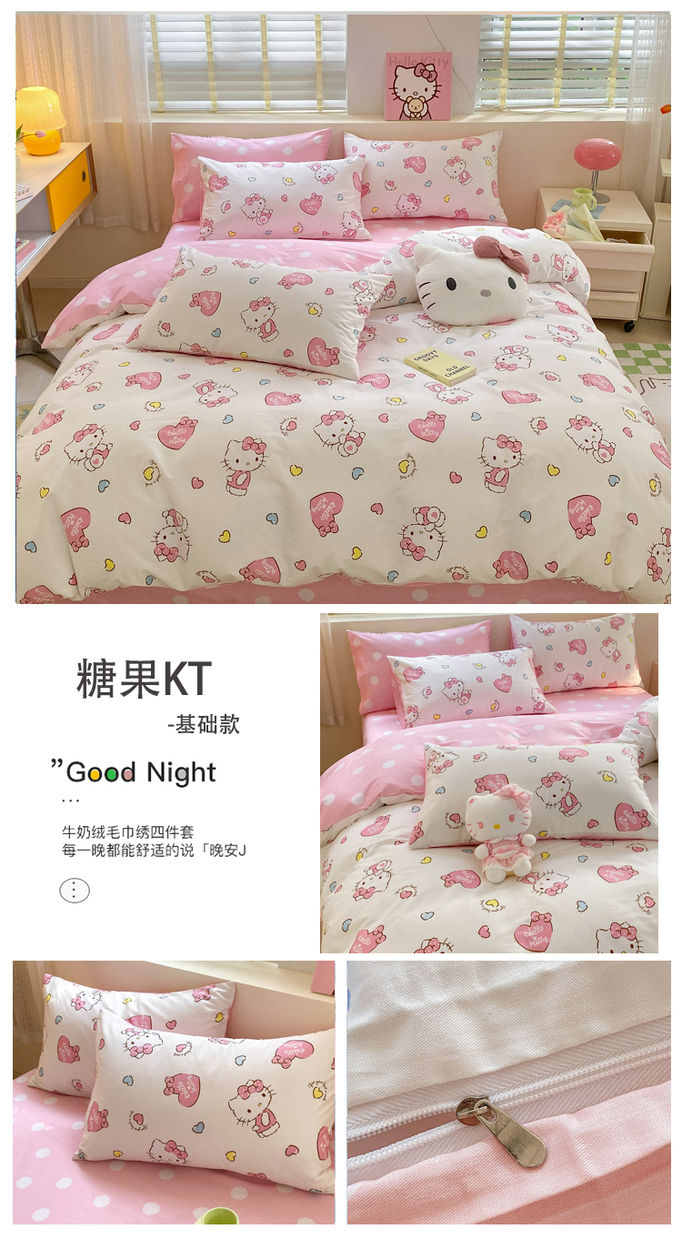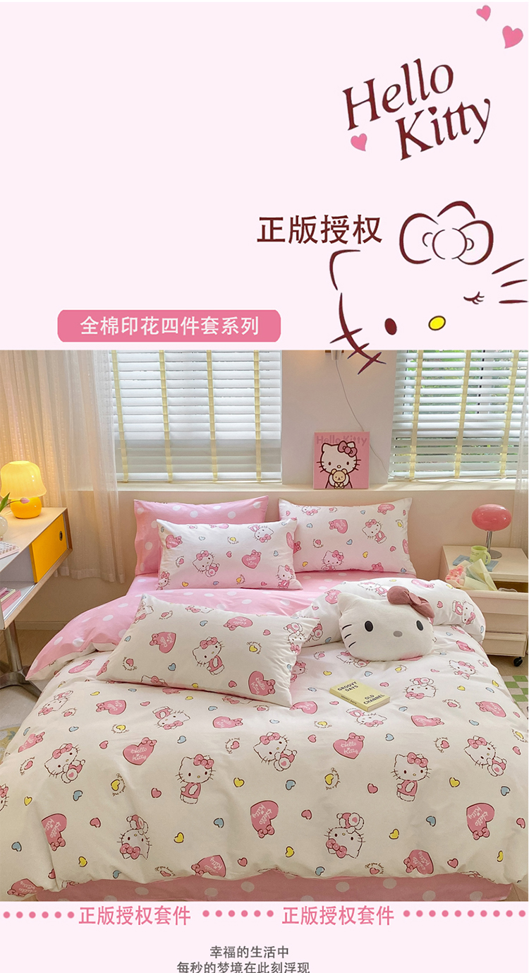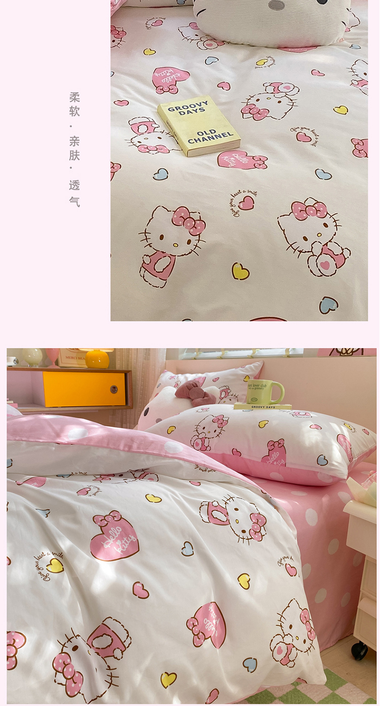 三朵 2024年全棉简单款三丽鸥系列四件套 糖果KT
