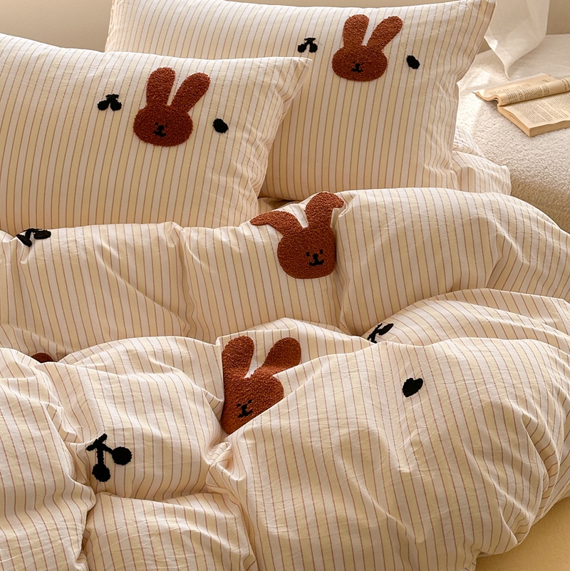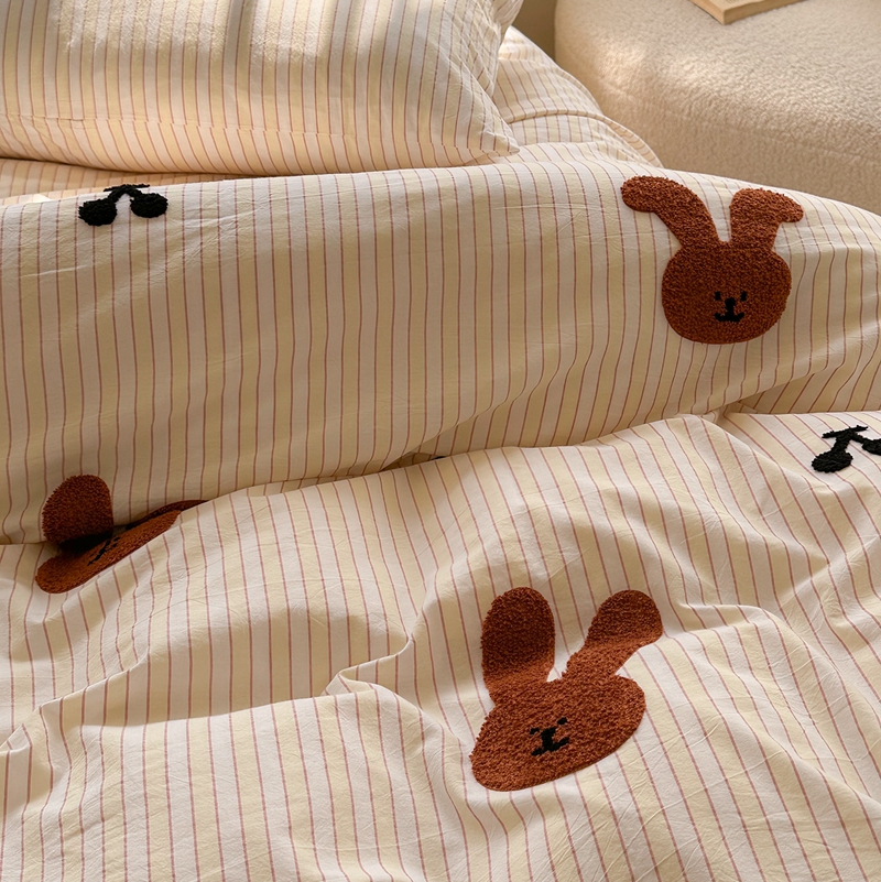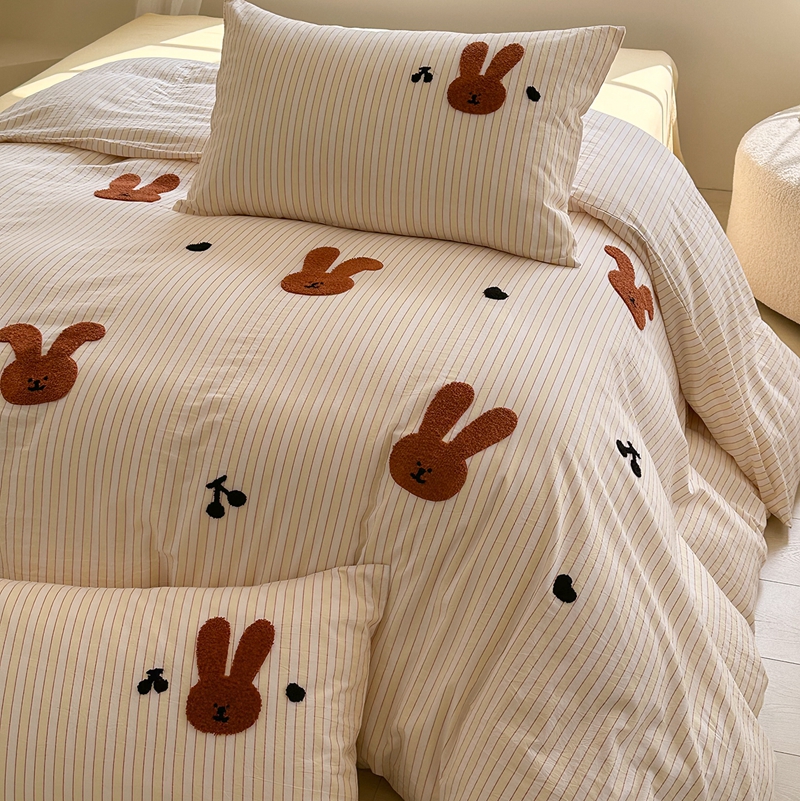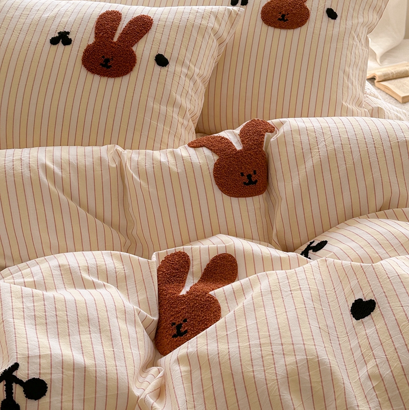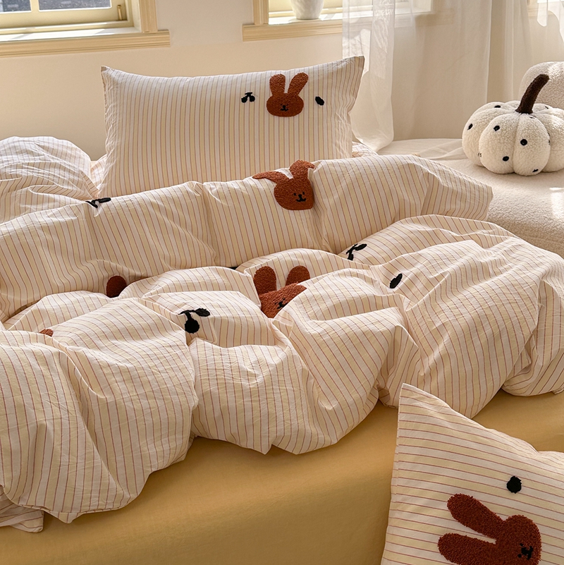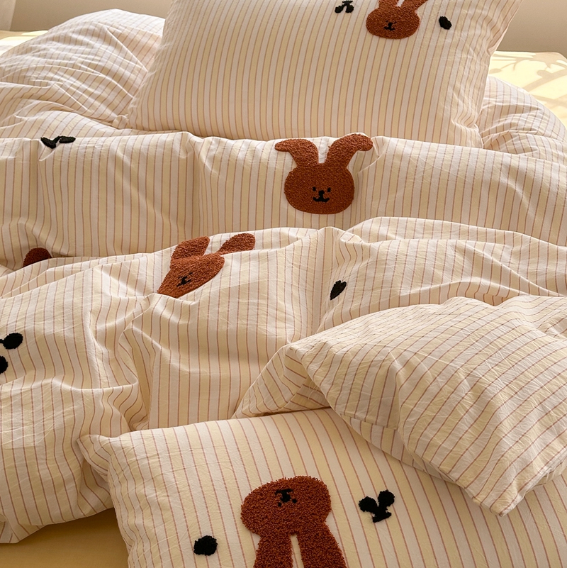 洋铭区(原狠狠爱) 2024新款色织水洗棉毛巾绣四件套 咖啡兔