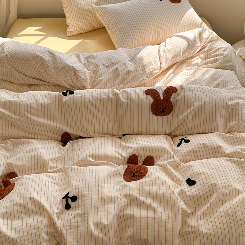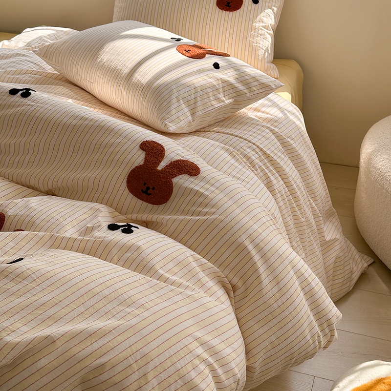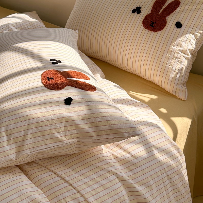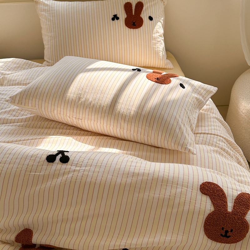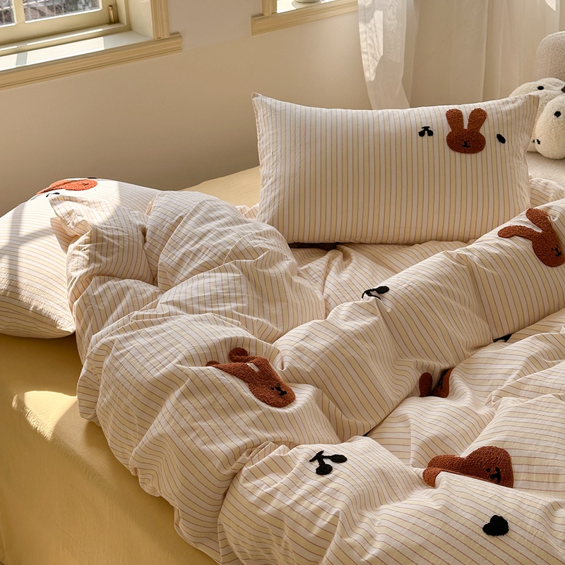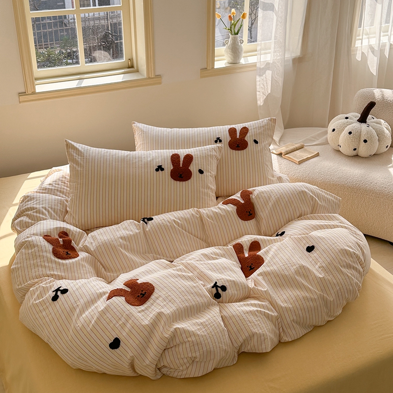 洋铭区(原狠狠爱) 2024新款色织水洗棉毛巾绣四件套 咖啡兔