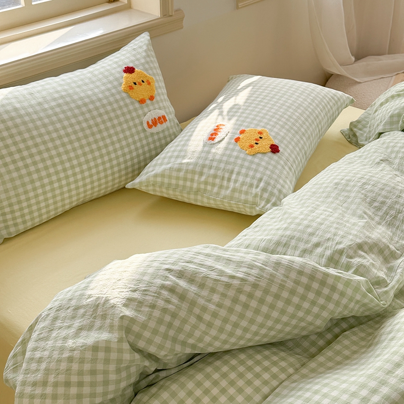 (总)洋铭区 2023新款色织水洗棉格子四件套,牛油果格,青桃格,山竹格,香橙格