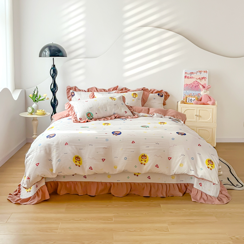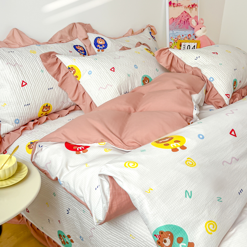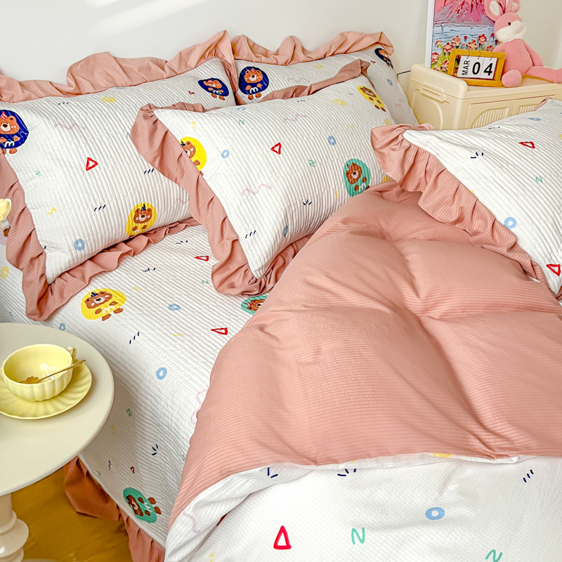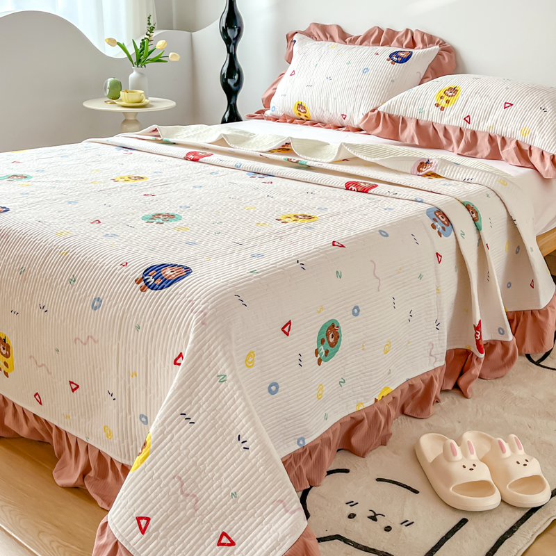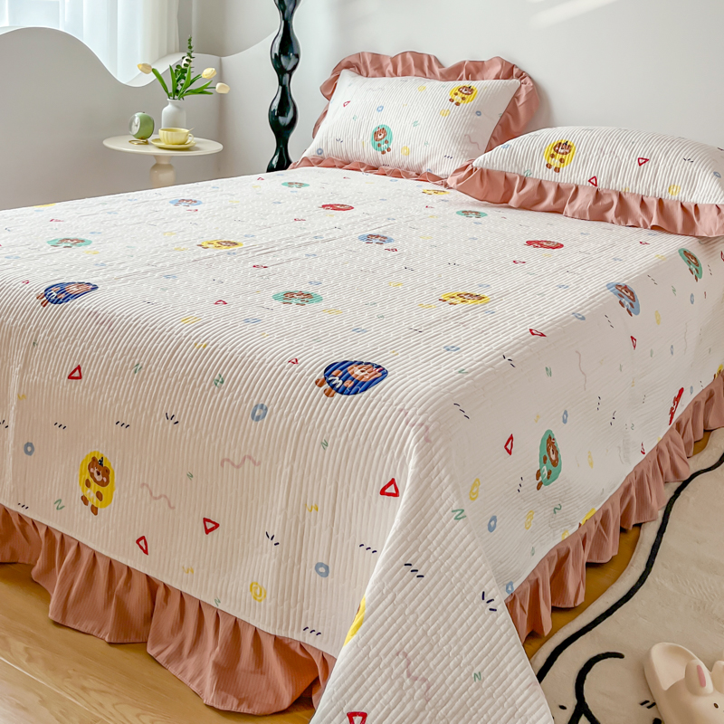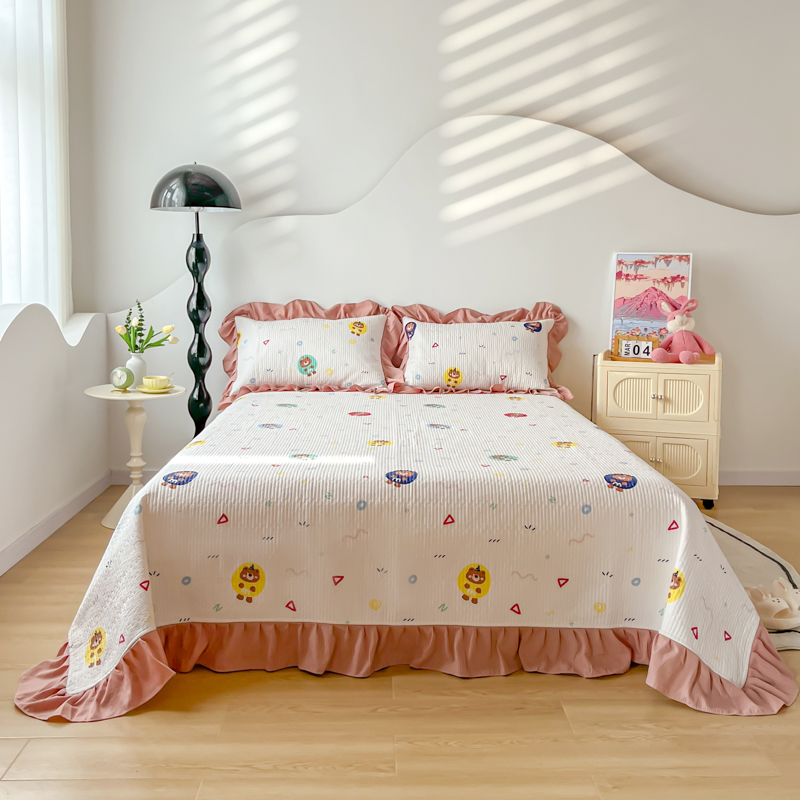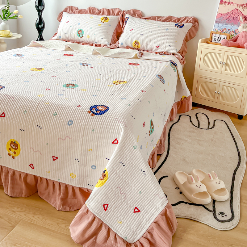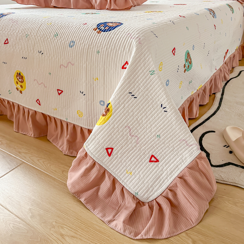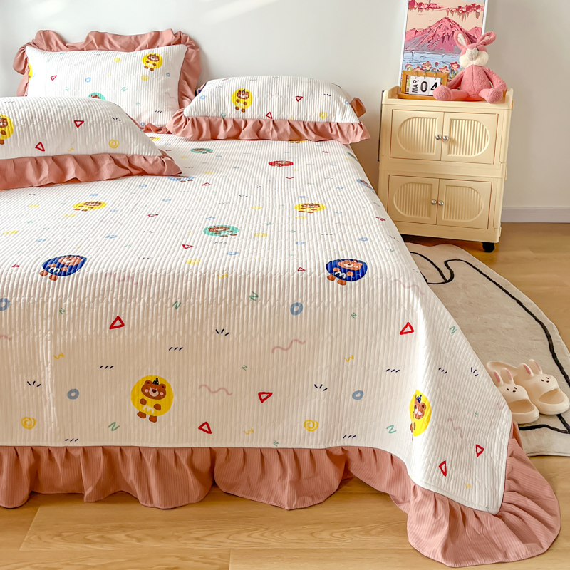 子曰 2024新款印花素色花边床盖三件套四件套 假日乐园