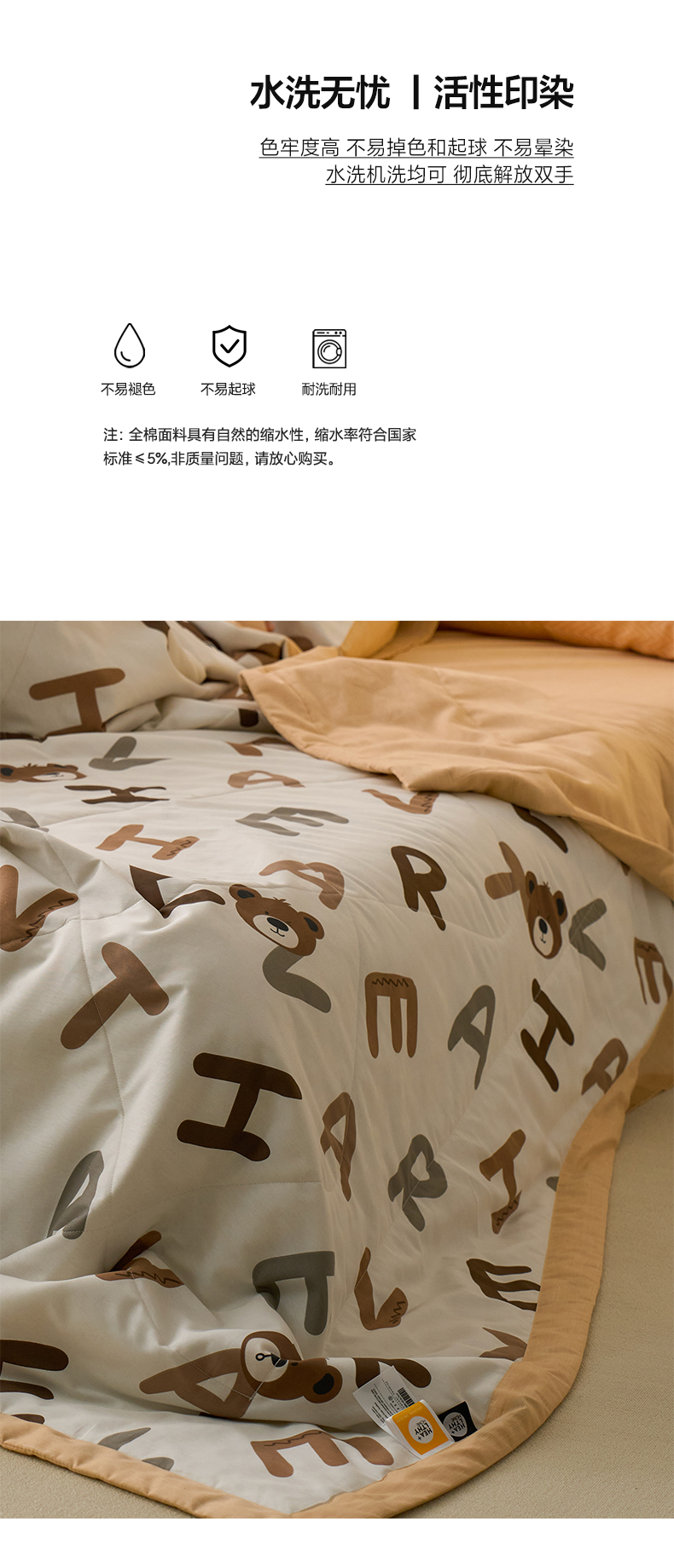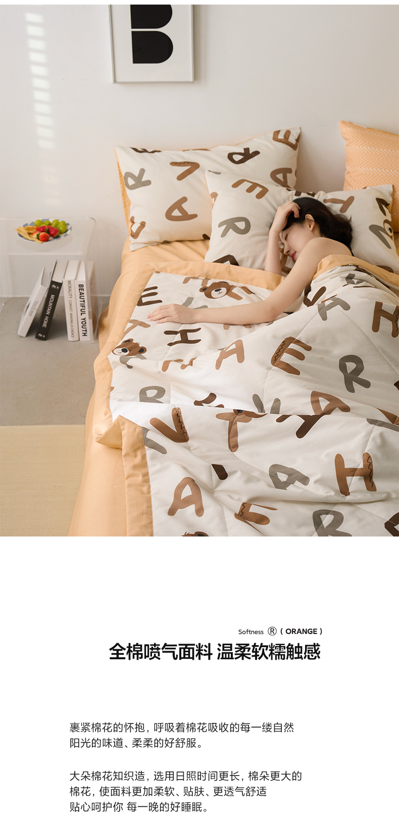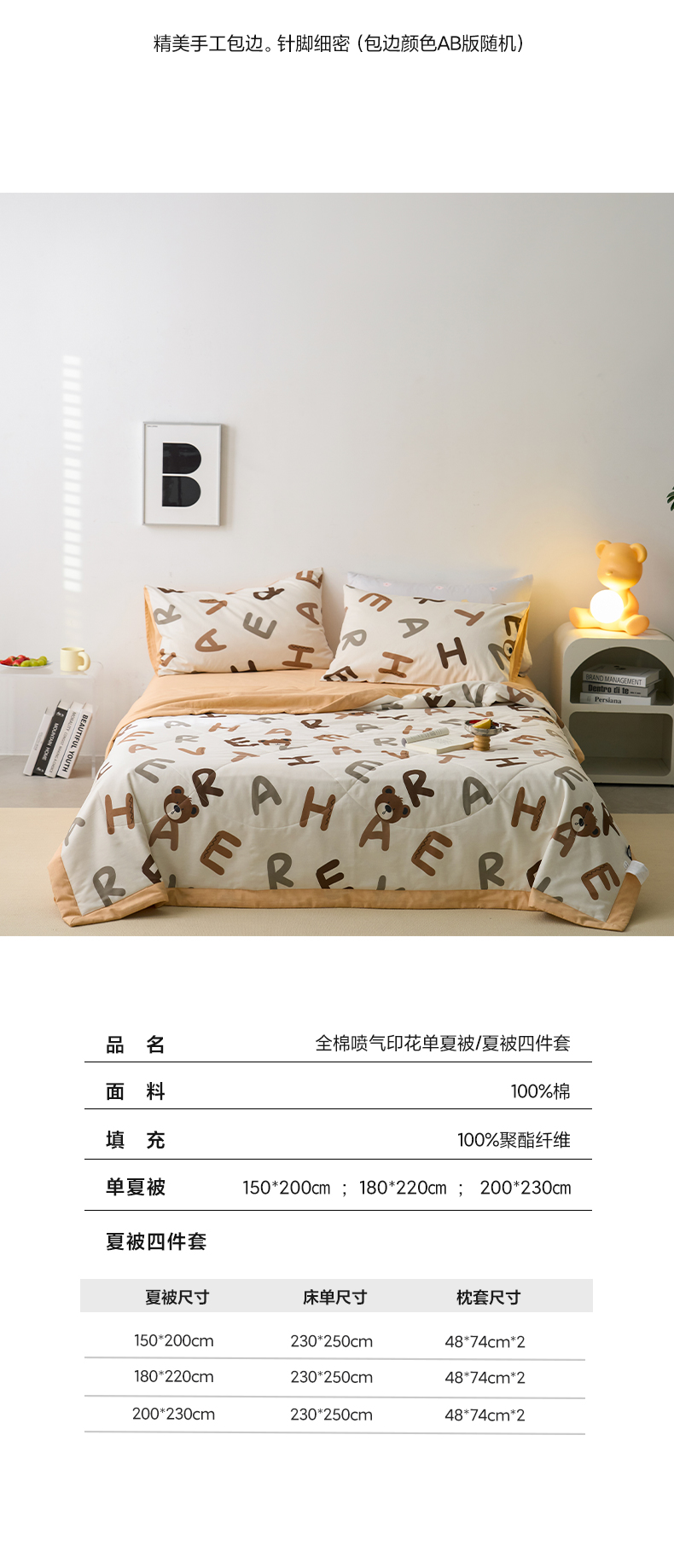 莱福仕家纺 2022 全棉喷气夏被四件套字母熊