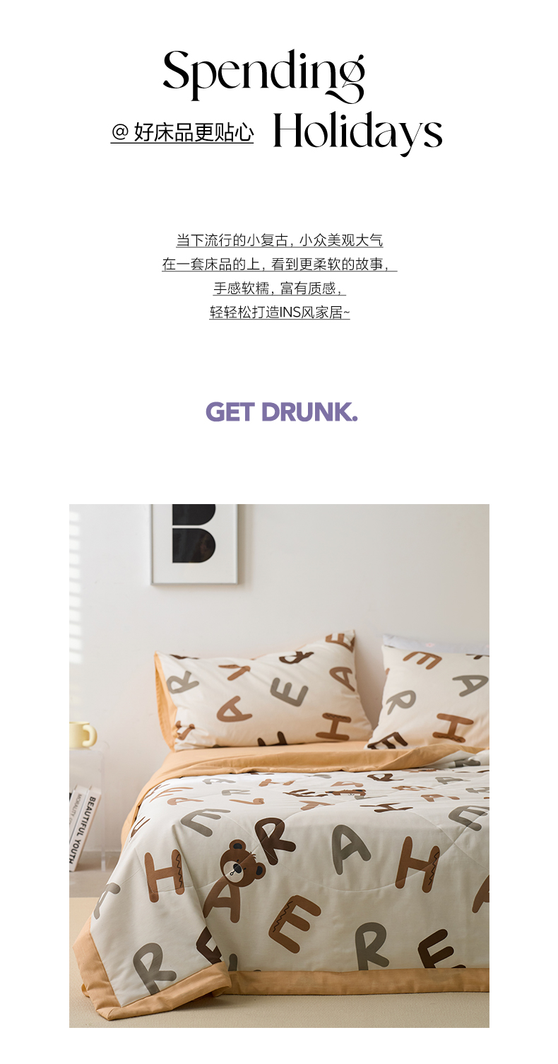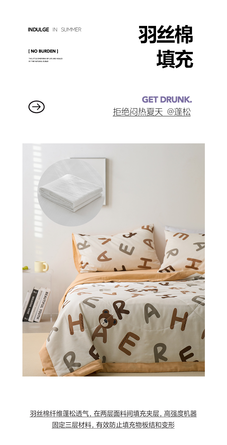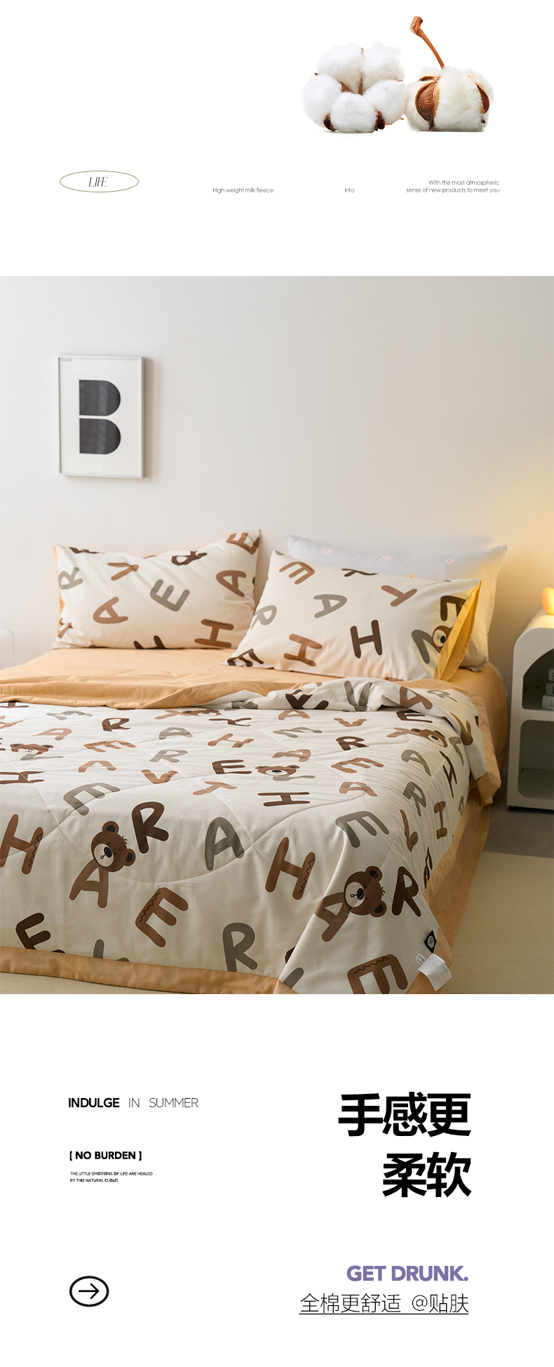 莱福仕家纺 2022 全棉喷气夏被四件套字母熊