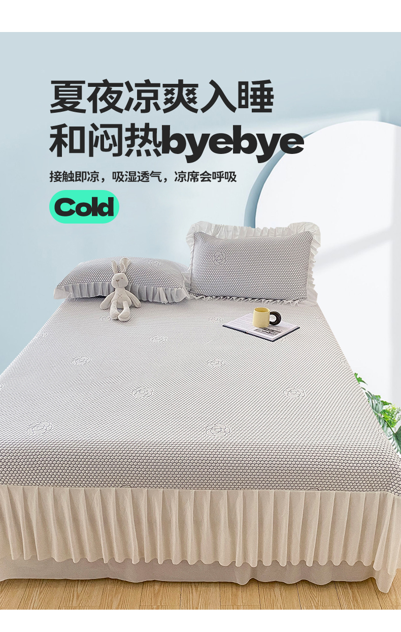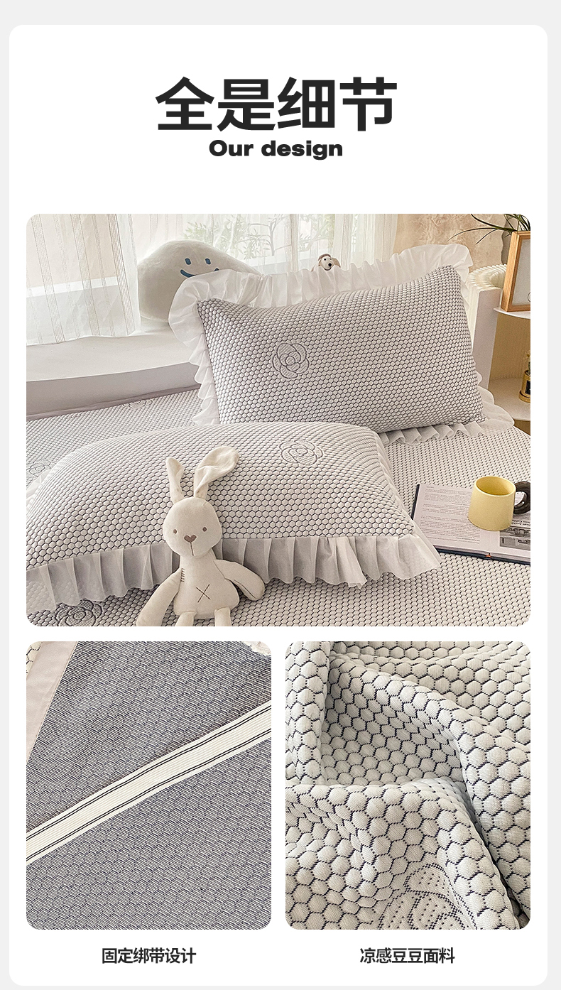 当前位置: 91家纺网 > 商品网购 > 床上用品 > 凉席 > 其他凉席 > 2024新款抗菌凉豆豆提花床裙款凉席-花朵系列 冰豆豆花朵系列-床裙款 淡雅灰