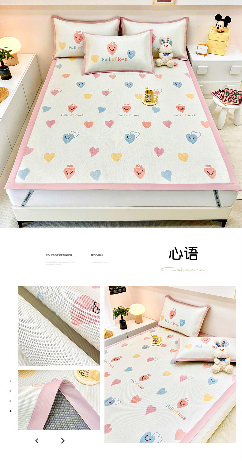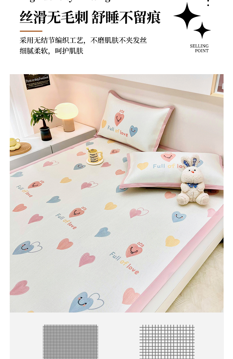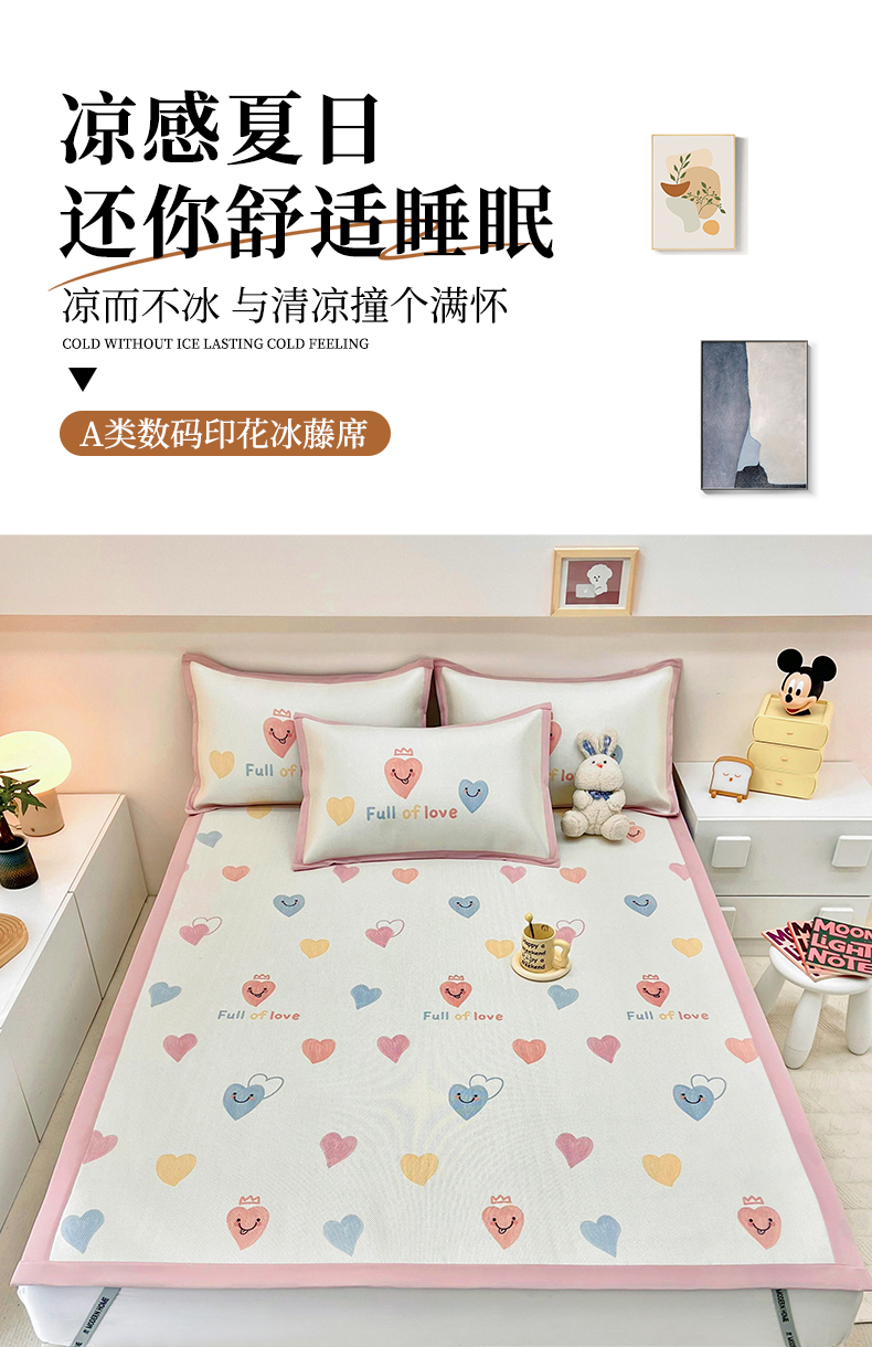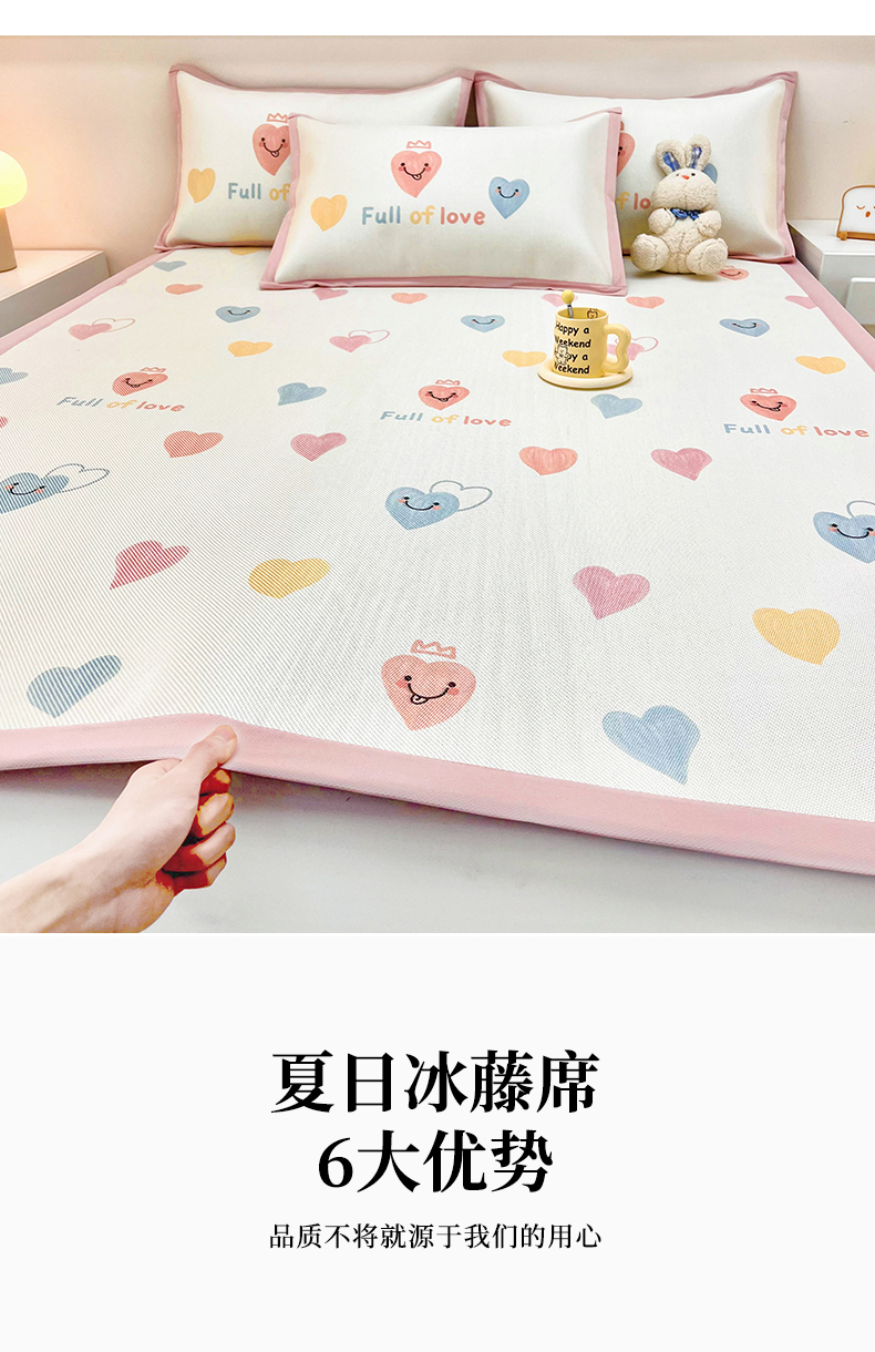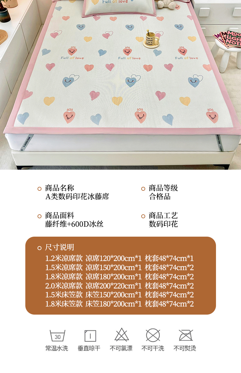 当前位置: 91家纺网 > 商品网购 > 床上用品 > 凉席 > 藤席 > 全季家居 2024新款5A抗菌小清新数码印花冰藤席 彩色爱心(床席款)