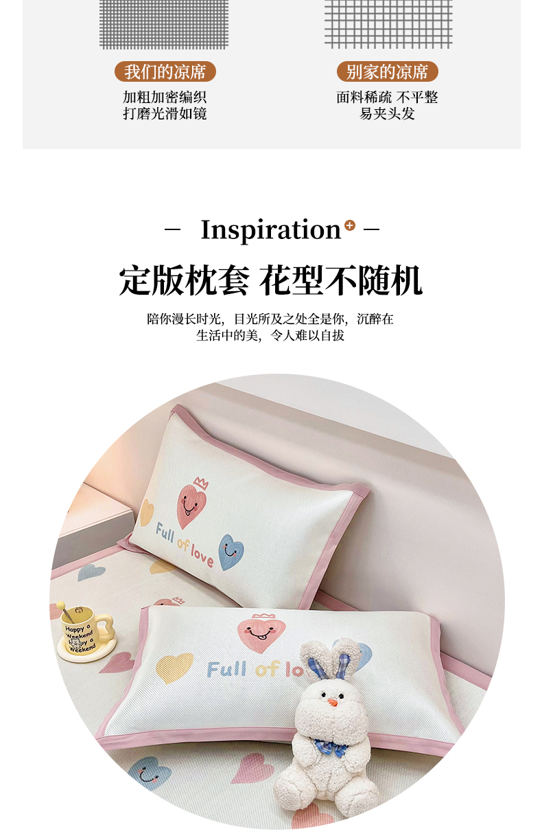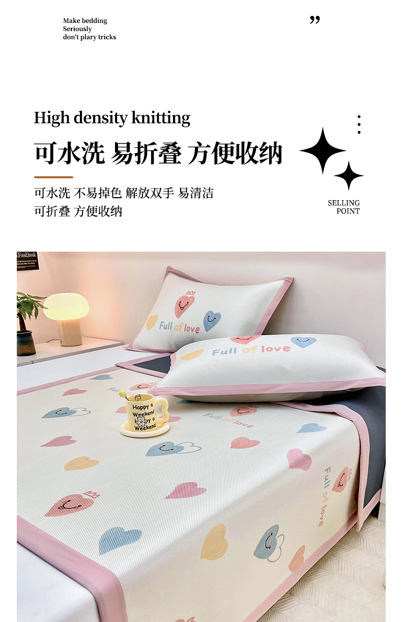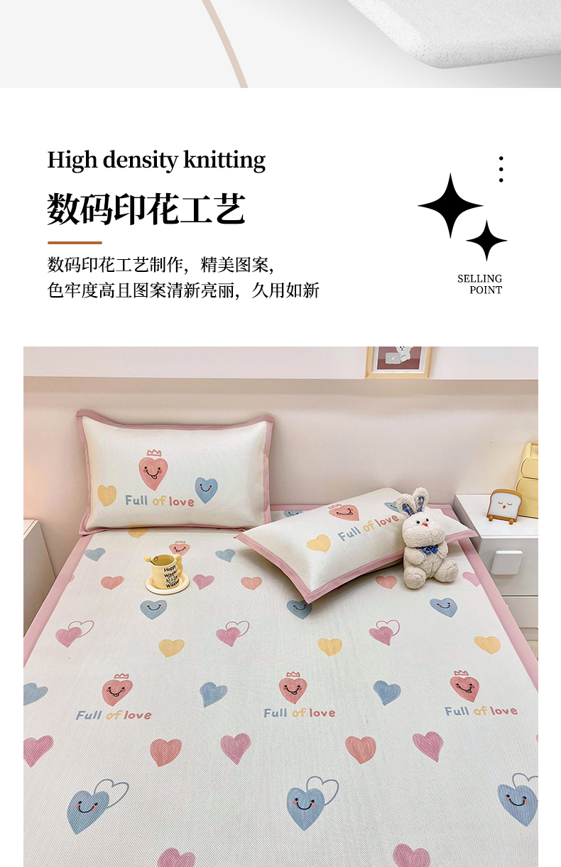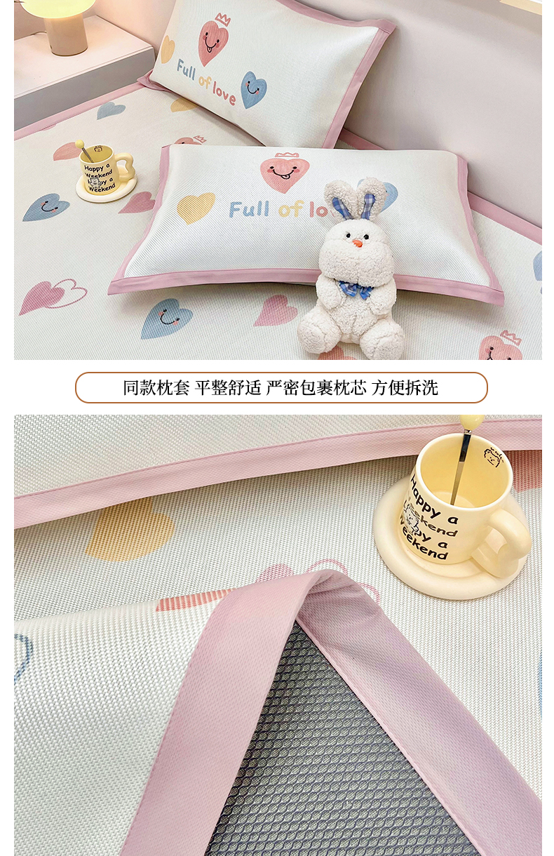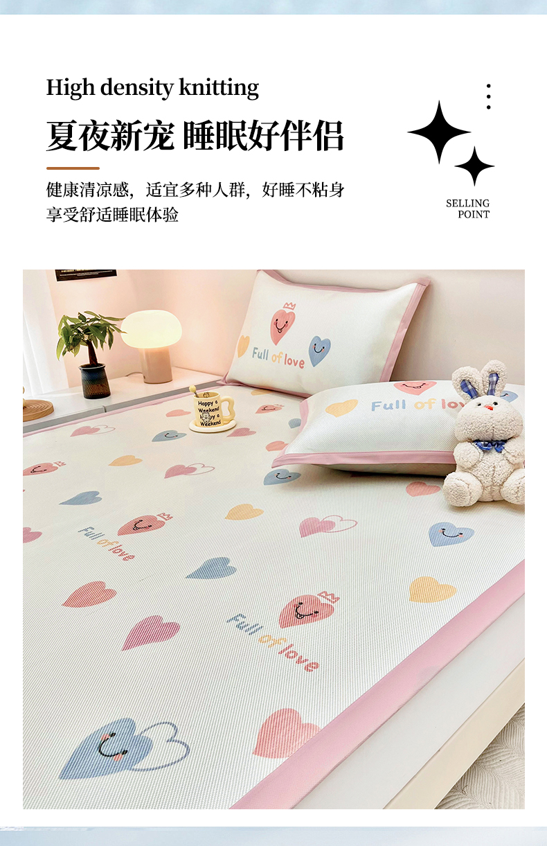 当前位置: 91家纺网 > 商品网购 > 床上用品 > 凉席 > 藤席 > 全季家居 2024新款5A抗菌小清新数码印花冰藤席 彩色爱心(床席款)