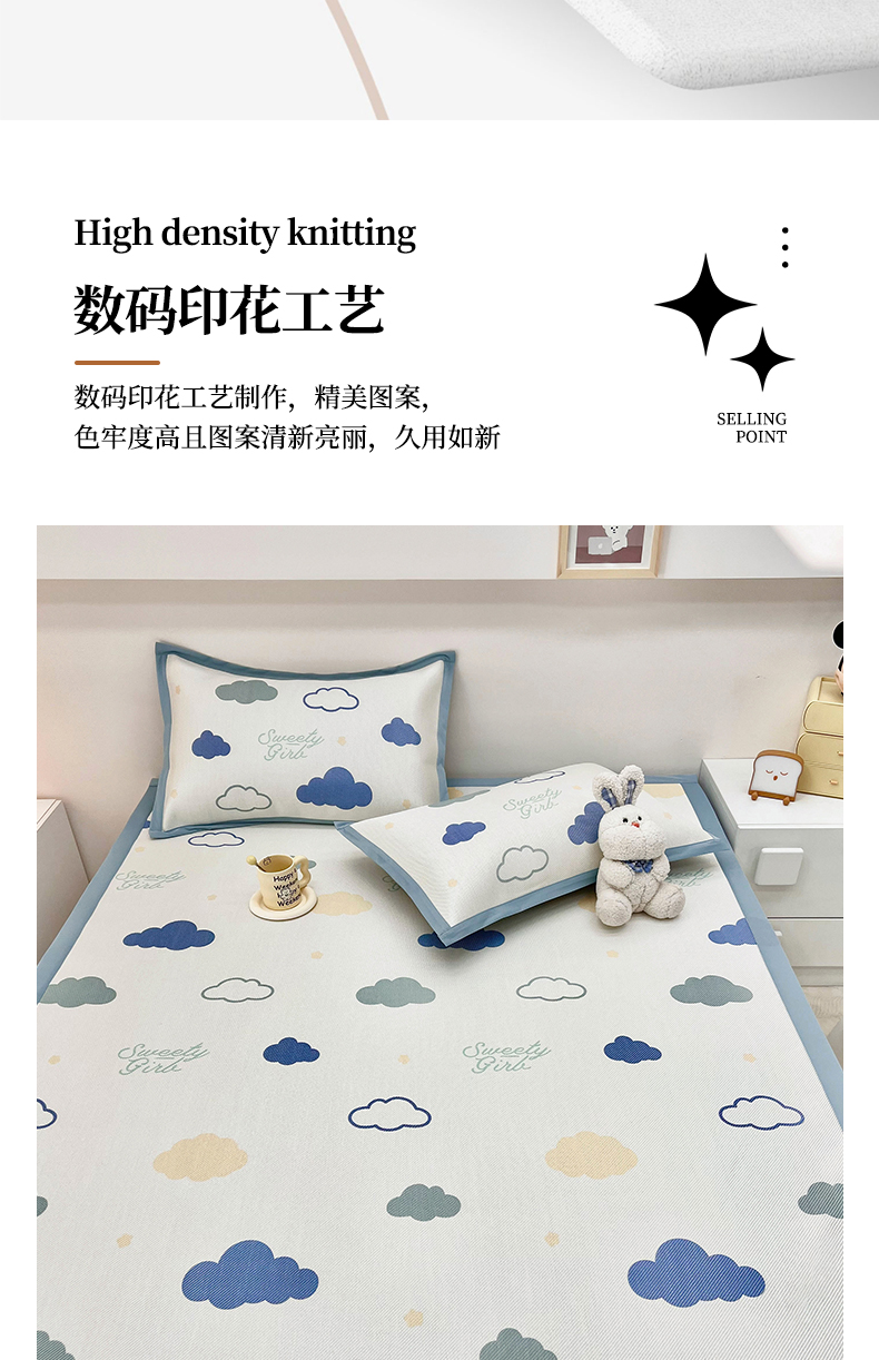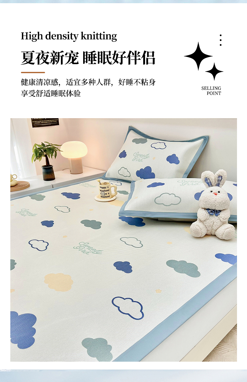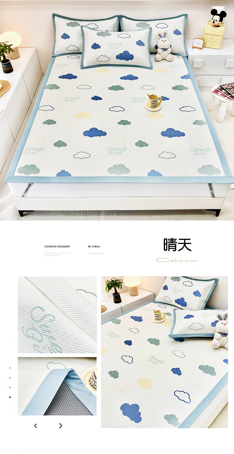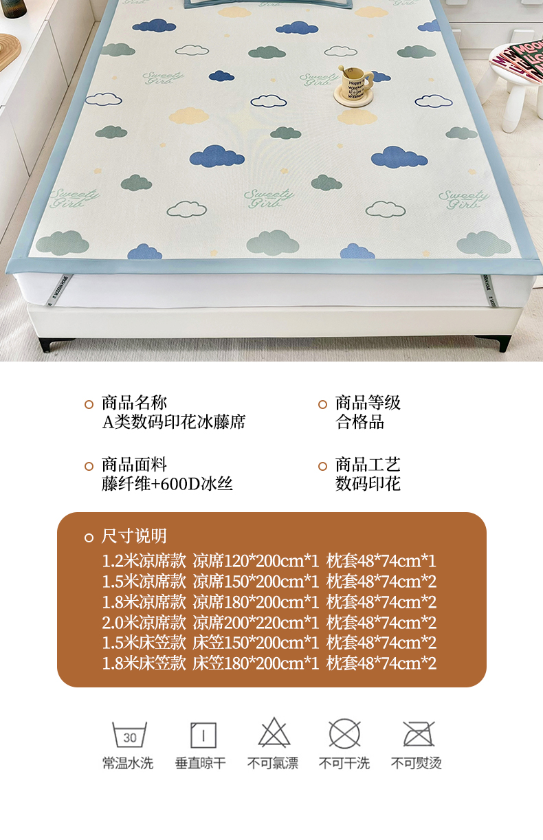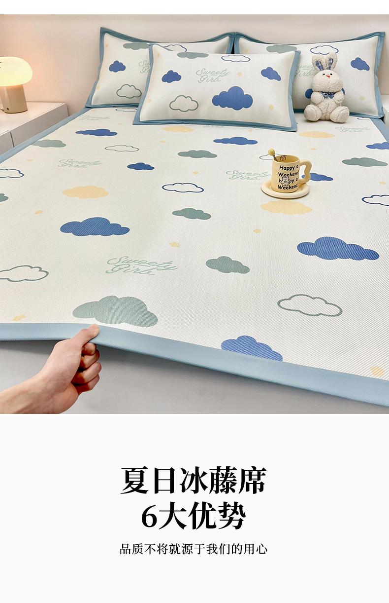 当前位置: 91家纺网 > 商品网购 > 床上用品 > 凉席 > 藤席 > 全季家居 2024新款5A抗菌小清新数码印花冰藤席 云朵(床席款)