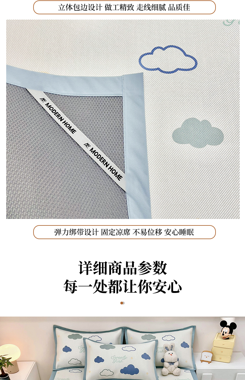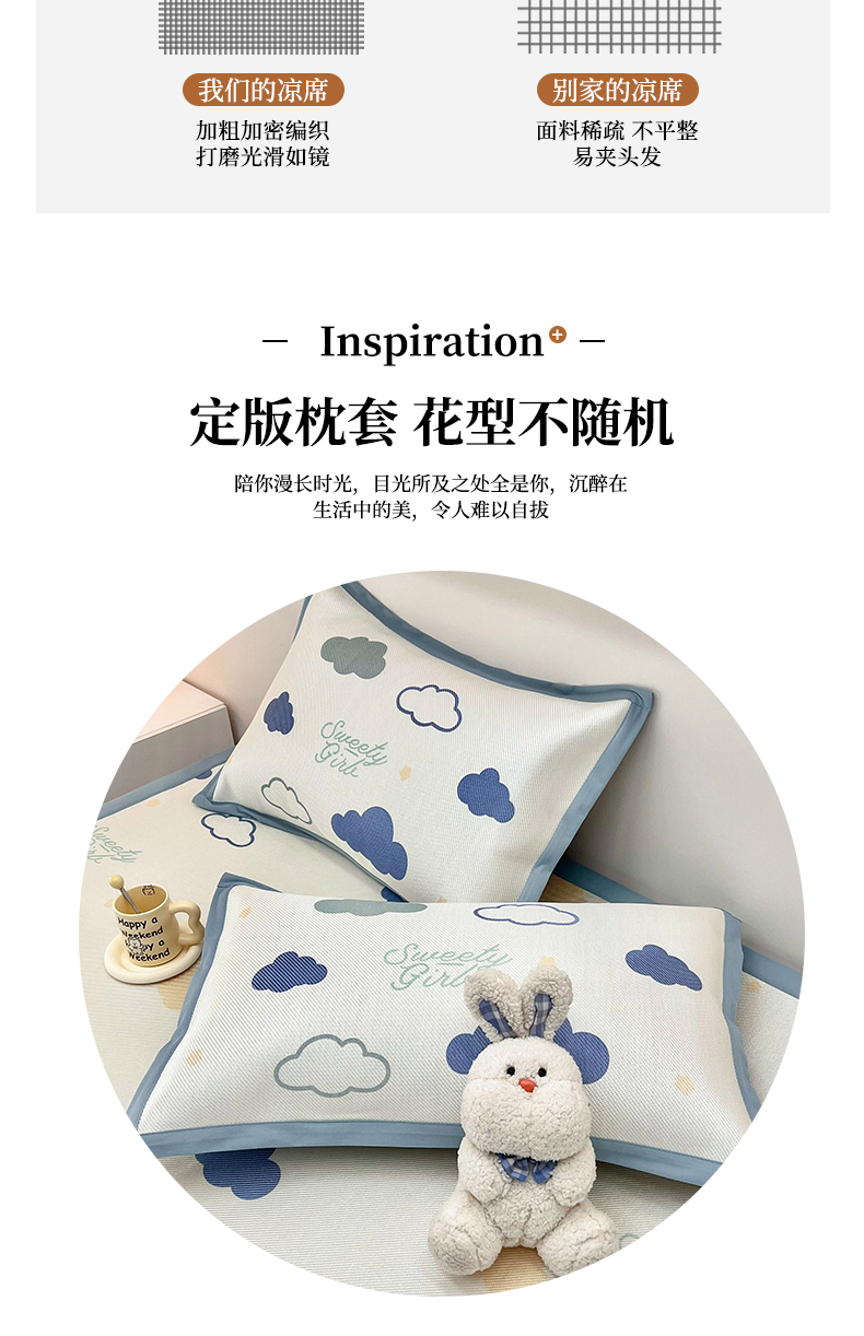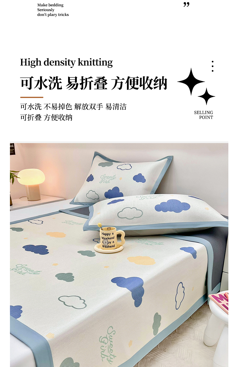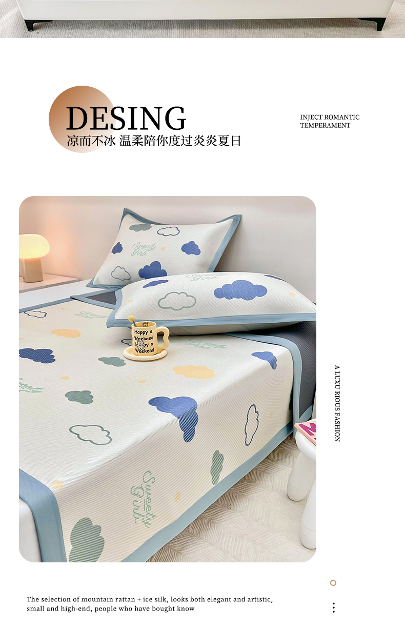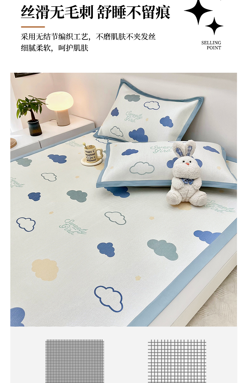 当前位置: 91家纺网 > 商品网购 > 床上用品 > 凉席 > 藤席 > 全季家居 2024新款5A抗菌小清新数码印花冰藤席 云朵(床席款)