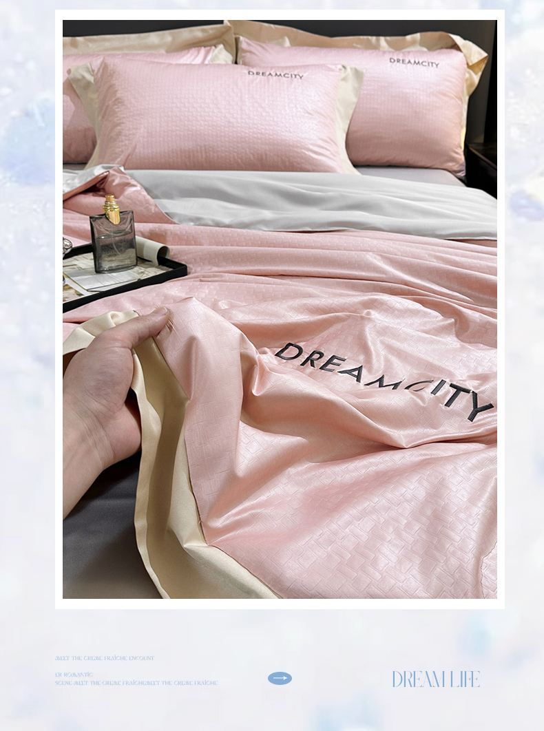 (总)古吉梦 2024新款水洗真丝提花四件套--迪梦 ,宾利蓝+山灰,豆沙+山灰,高级灰+奶茶,海青+山灰,奶昔白+奶茶,山灰+中灰,天空蓝+海青,星空蓝+山灰,中灰+山灰