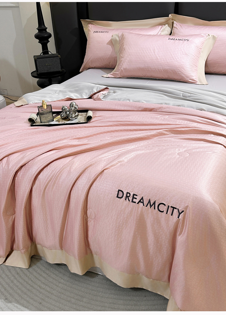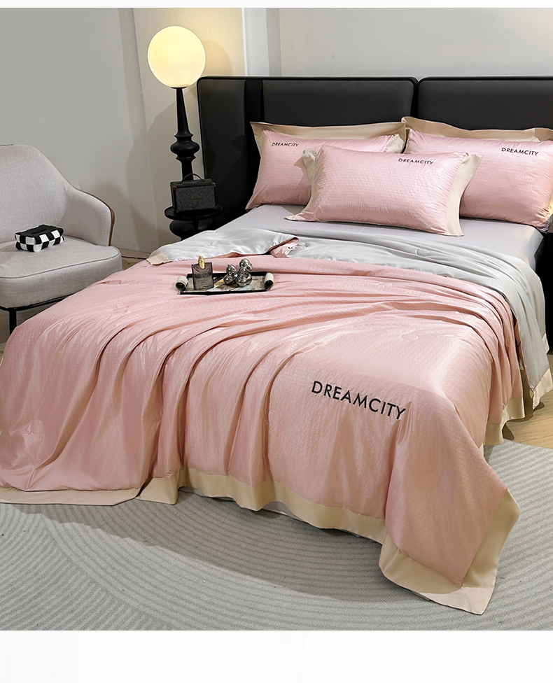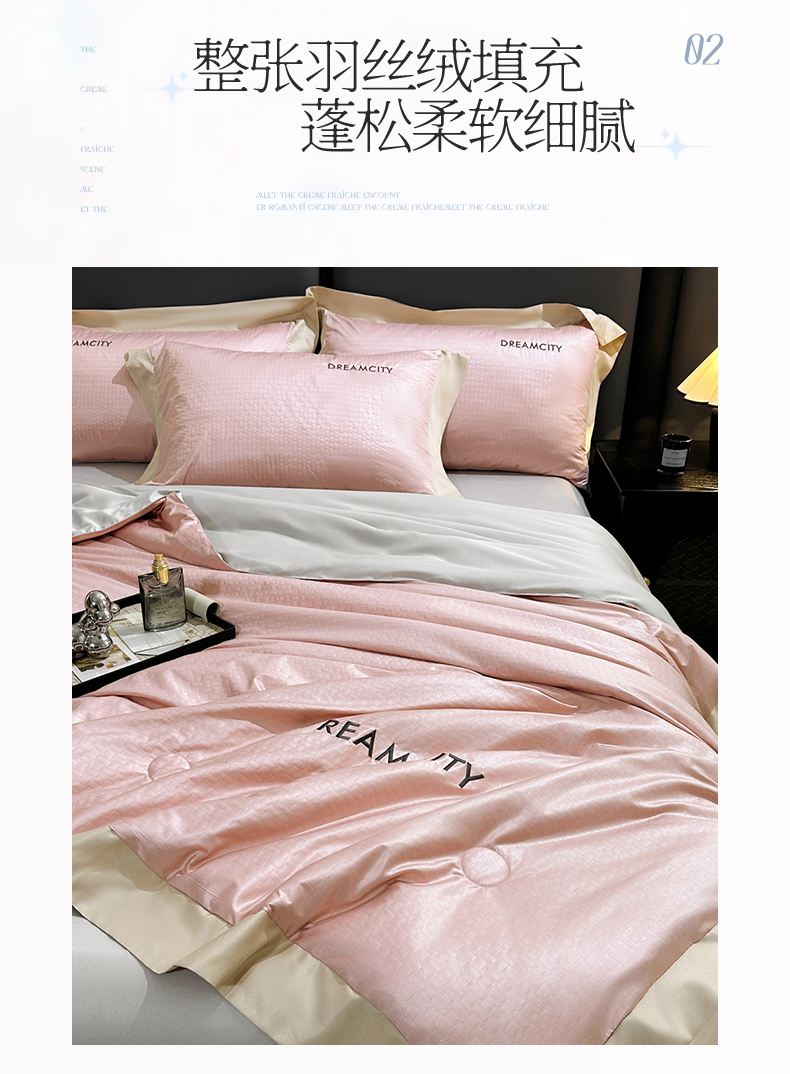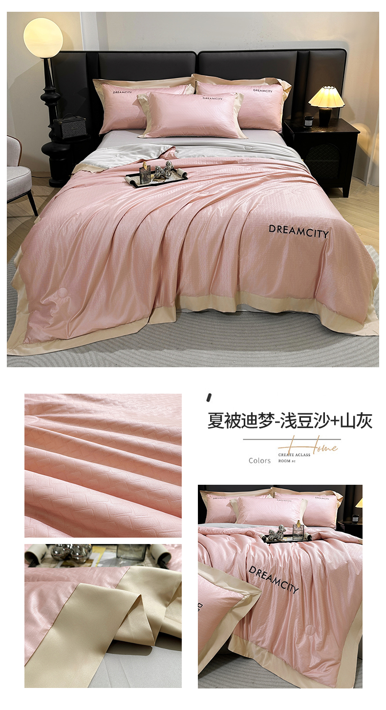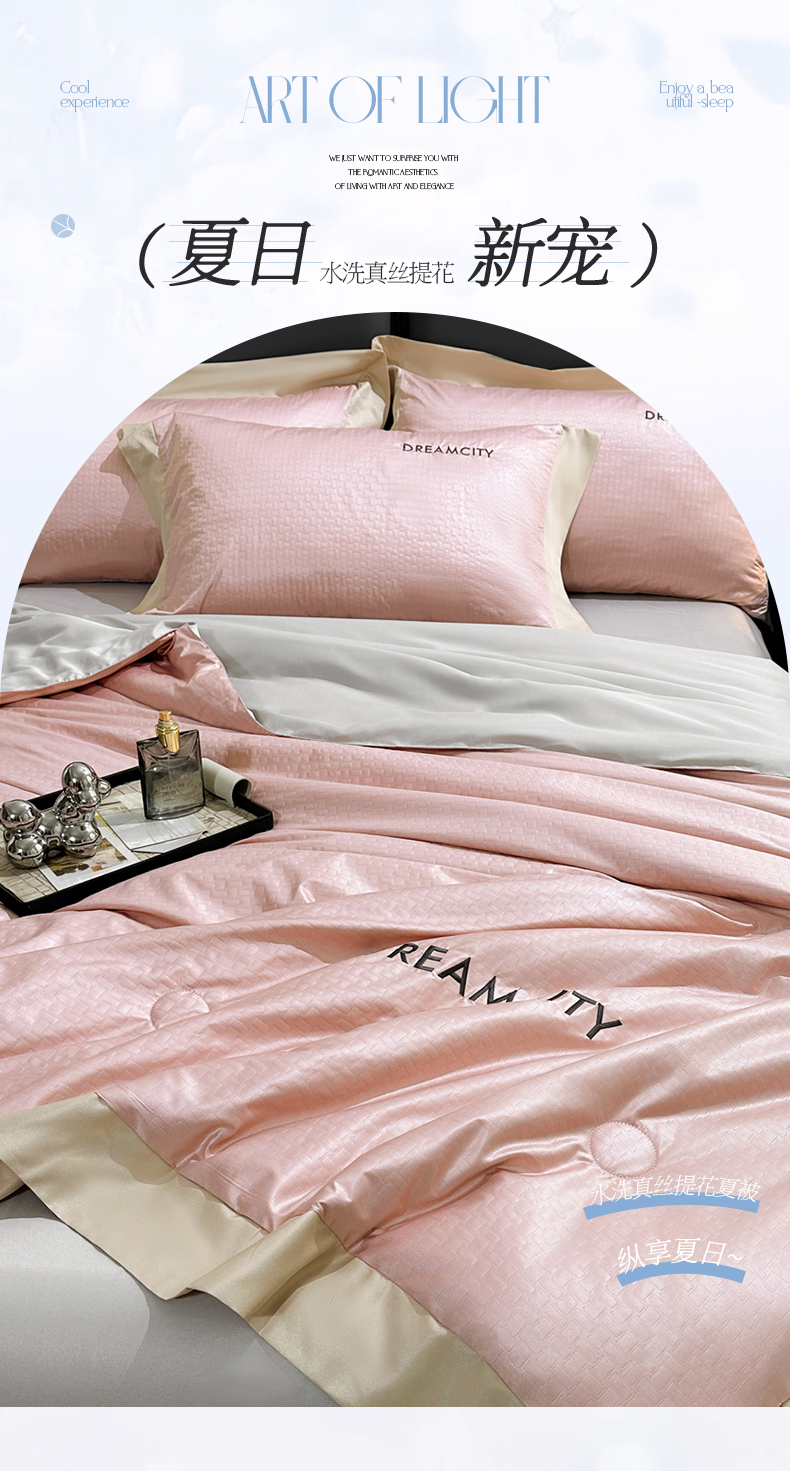 古吉梦 2024新款水洗真丝提花夏被--迪梦 浅豆沙+山灰